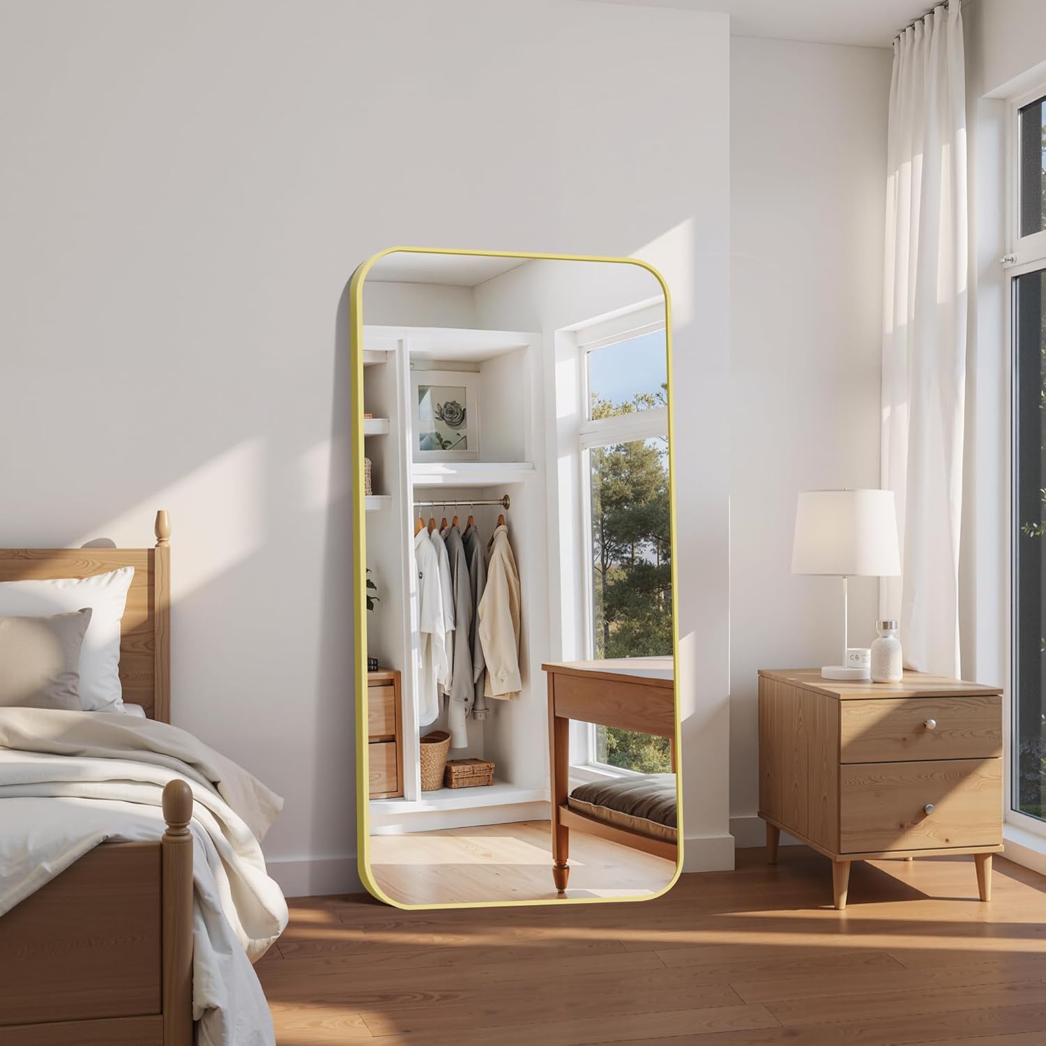 - Elegant Rounded Corners & Premium Safety: Featuring a sleek gold metal frame with softly contoured rounded corners. This sophisticated design combines modern elegance with enhanced safety, eliminating sharp edges while adding a luxe minimalist finish. The rich black frame elevates any decor, creating a visually expansive effect that brightens spaces and amplifies the sense of openness.