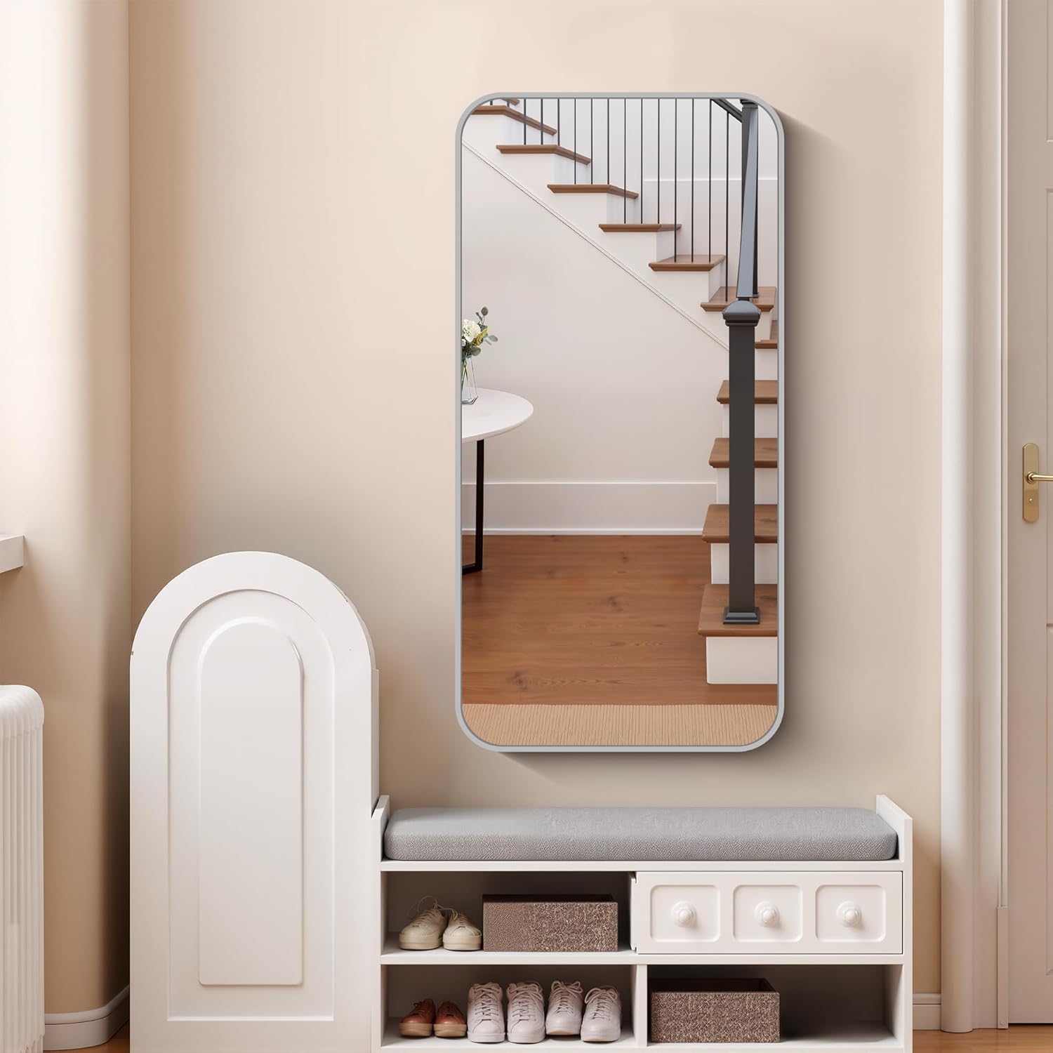 FORBATH 24x48 Inch Silver Bathroom Mirror for Over Sink, Narrow Rectangular Full Length Mirror with Metal Frame, Rounded Corners for Bathroom, Bedroom, Entryway Decor (Horizontal or Vertical)