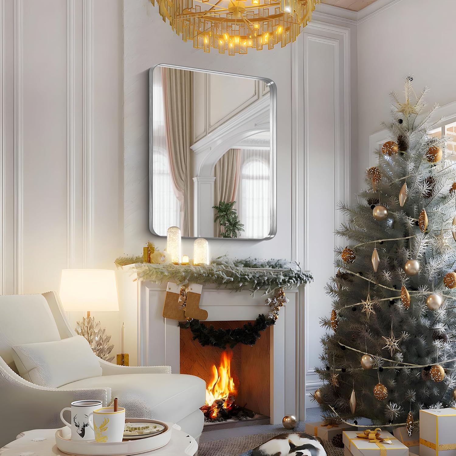 FORBATH 48x36 Inch Bathroom Mirror, Brushed Silver Deep Frame Wall Mirror with Rounded Corners, Anti-Rust Tempered Glass for Modern Farmhouse Vanity (Horizontal/Vertical Hanging)