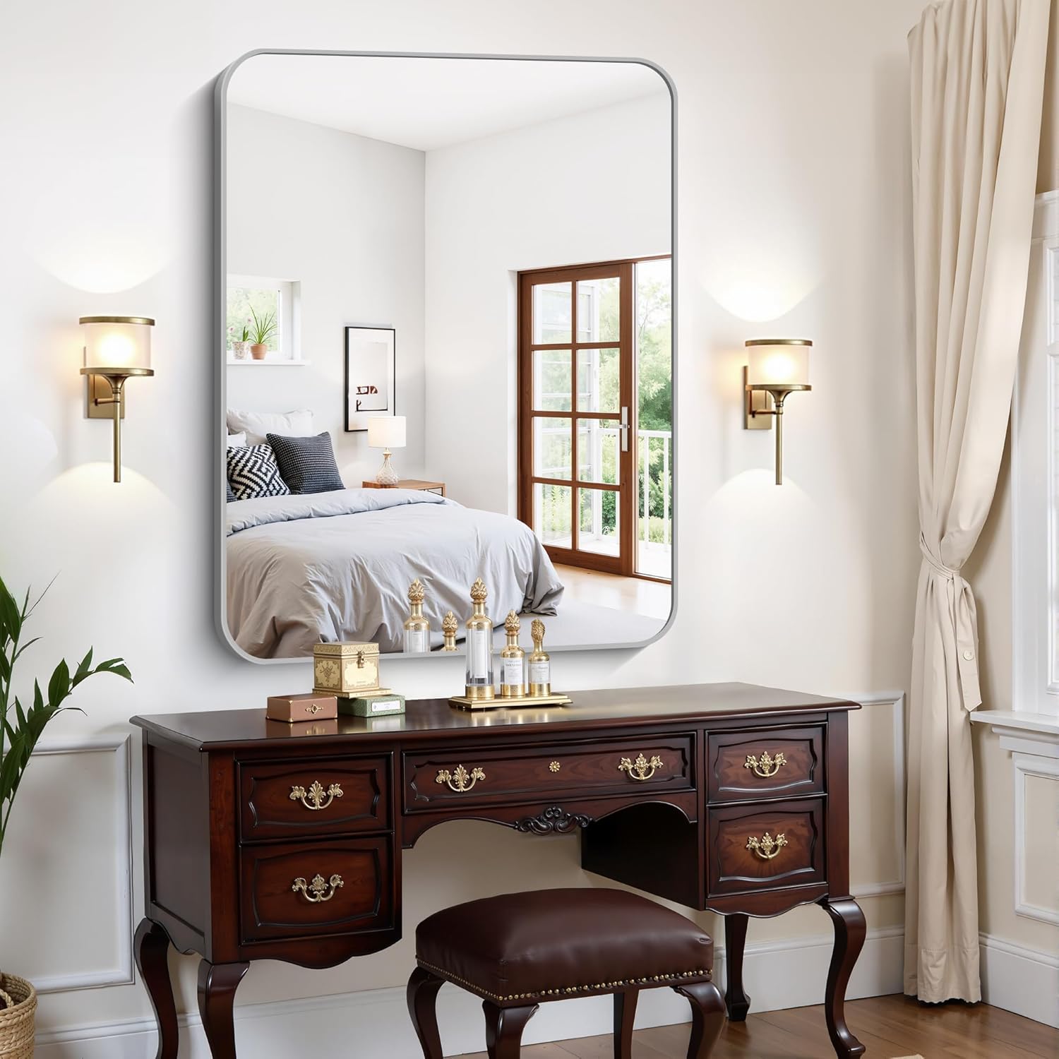 FORBATH 40x48 Inch Silver Bathroom Mirror for Over Sink, Large Rectangular Wall Mirror with Metal Frame, Rounded Corners for Bathroom, Bedroom, Entryway Decor (Horizontal or Vertical)