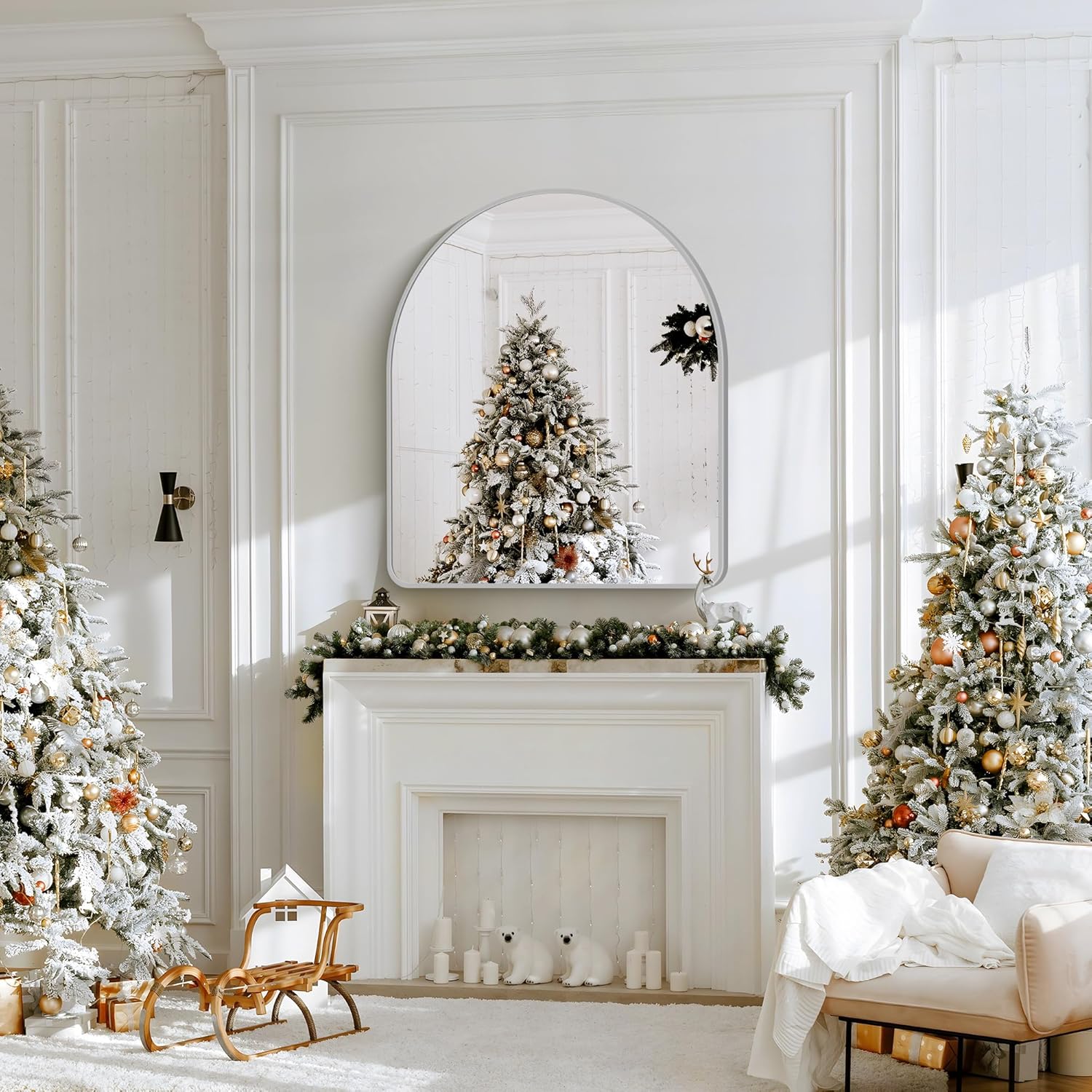 FORBATH Large Arched Wall Mirror 40x36 Inch, Silver Arch Bathroom Mirror with Aluminum Frame, Arched Mirror for Dresser, Fireplace,Entryway,Home Decor,Hanging or Leaning Against Wall