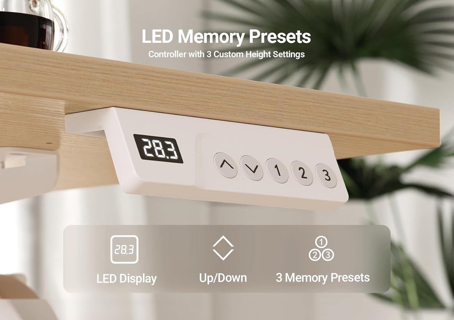 - Personalized Sit-Stand Wellness Settings: With 3 memory presets and an intuitive LED control panel, this stand up desk allows you to instantly switch between your ideal sitting, standing, and collaborative heights. One-touch standing helps reduce fatigue from long hours of sitting.