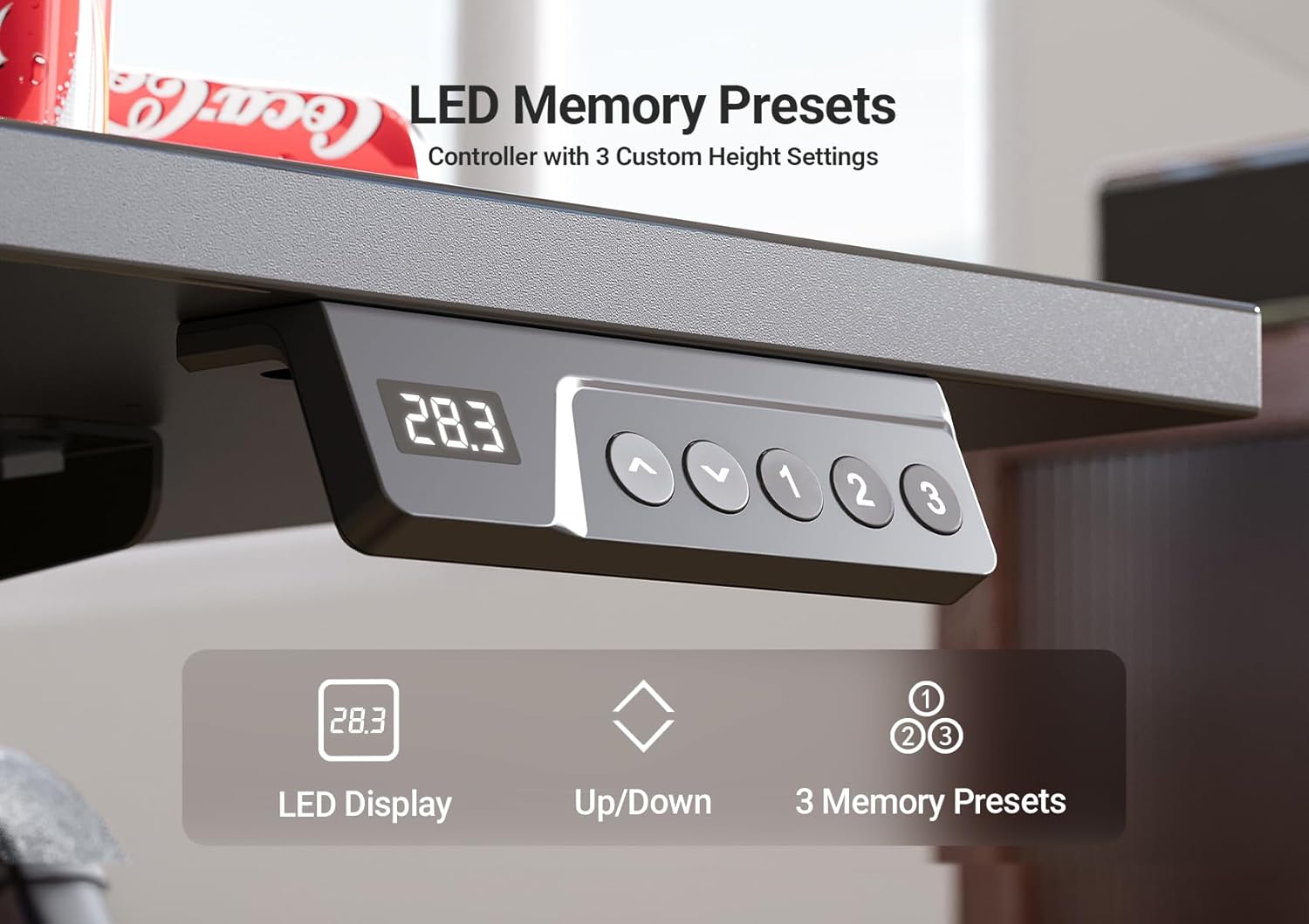- Personalized Sit-Stand Wellness Settings: With 3 memory presets and an intuitive LED control panel, this stand up desk allows you to instantly switch between your ideal sitting, standing, and collaborative heights. One-touch standing helps reduce fatigue from long hours of sitting.