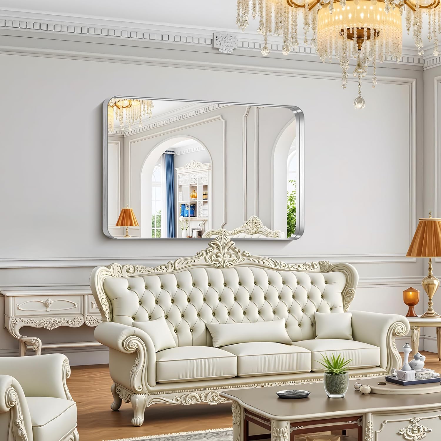 - Double-Vanity Solution: Creates symmetrical focal point above dual sinks - brushed silver deep frame visually expands space while complementing modern farmhouse/industrial decors.