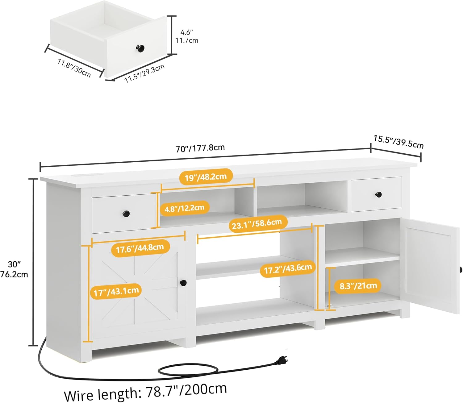 DWVO Farmhouse TV Stand for 75/80 Inches TVs, Entertainment Centers Furniture 30" Tall, TV Consoles with Storage Drawers & Power Outlet, Rustic TV Stands for Living Room, White