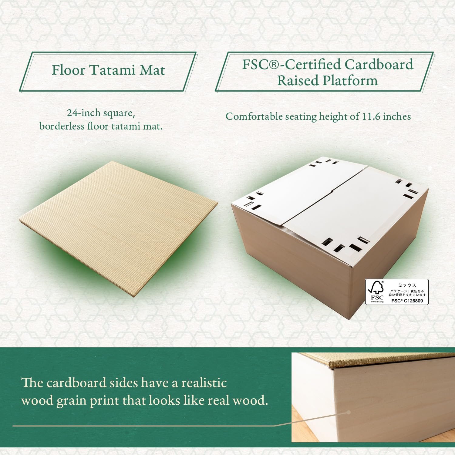 - [Environmentally Friendly Material] The base under the tatami mat is made of wood-grain printed cardboard. Easy to dispose of and recyclable. Environmentally conscious materials are used.