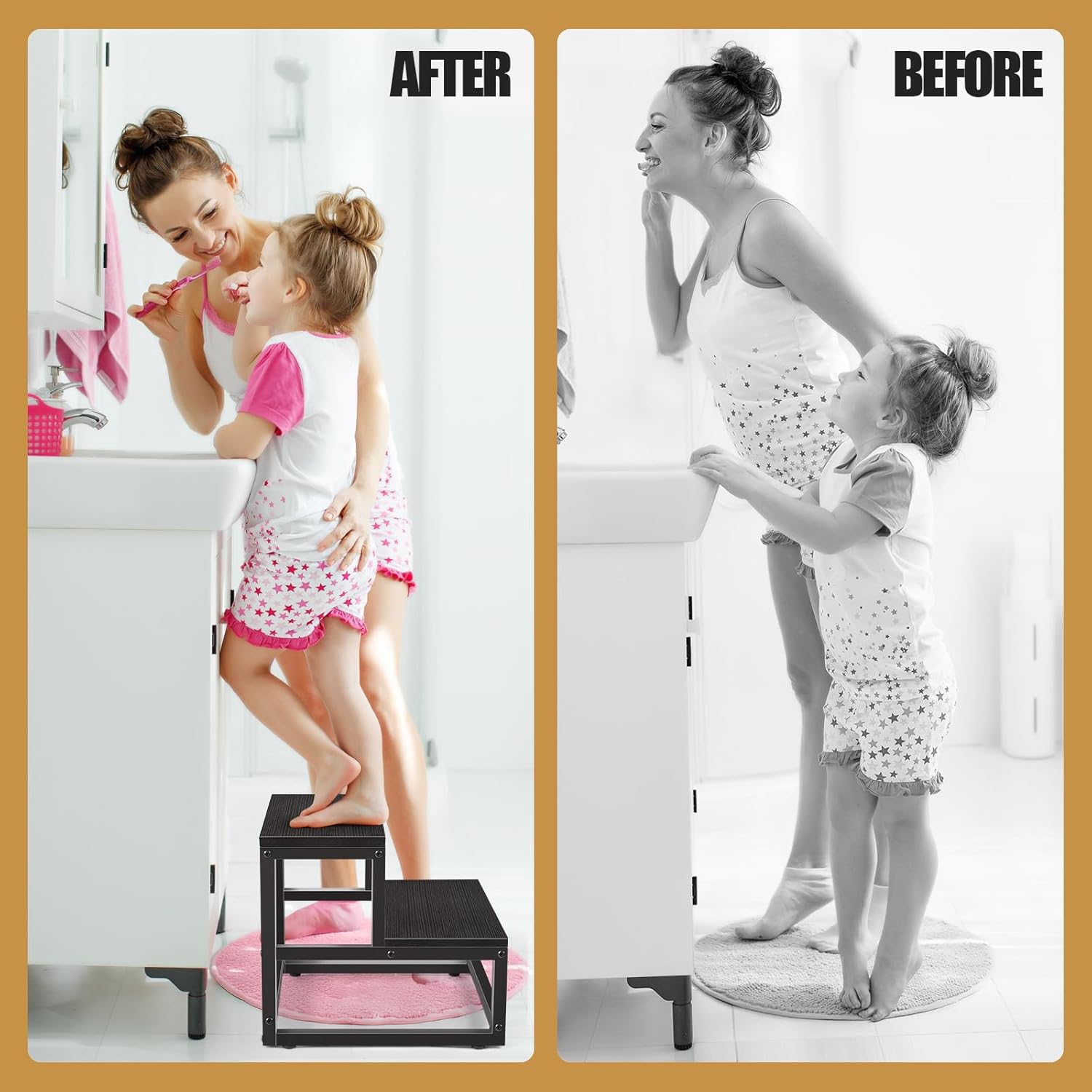 - Heavy-Duty Frame with 500 lbs Load Capacity: Strong enough for adults and stable enough for toddlers—this step stool easily holds up to 500 pounds with no shaking or instability