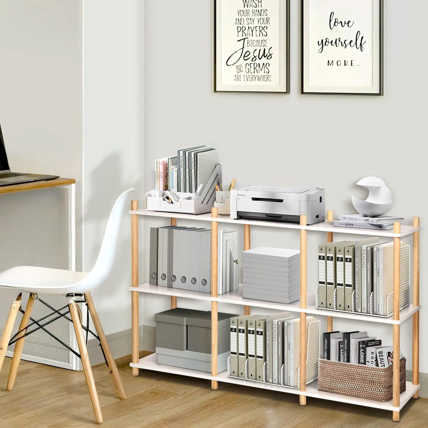 YGYQZ 3 Tier Short Book Shelf, Wood Shelves with Open Back Long Horizontal 6 Cube Storage Shelf Book Shelves for Office, Living Room, Bedroom, Rustic Shelf (White)