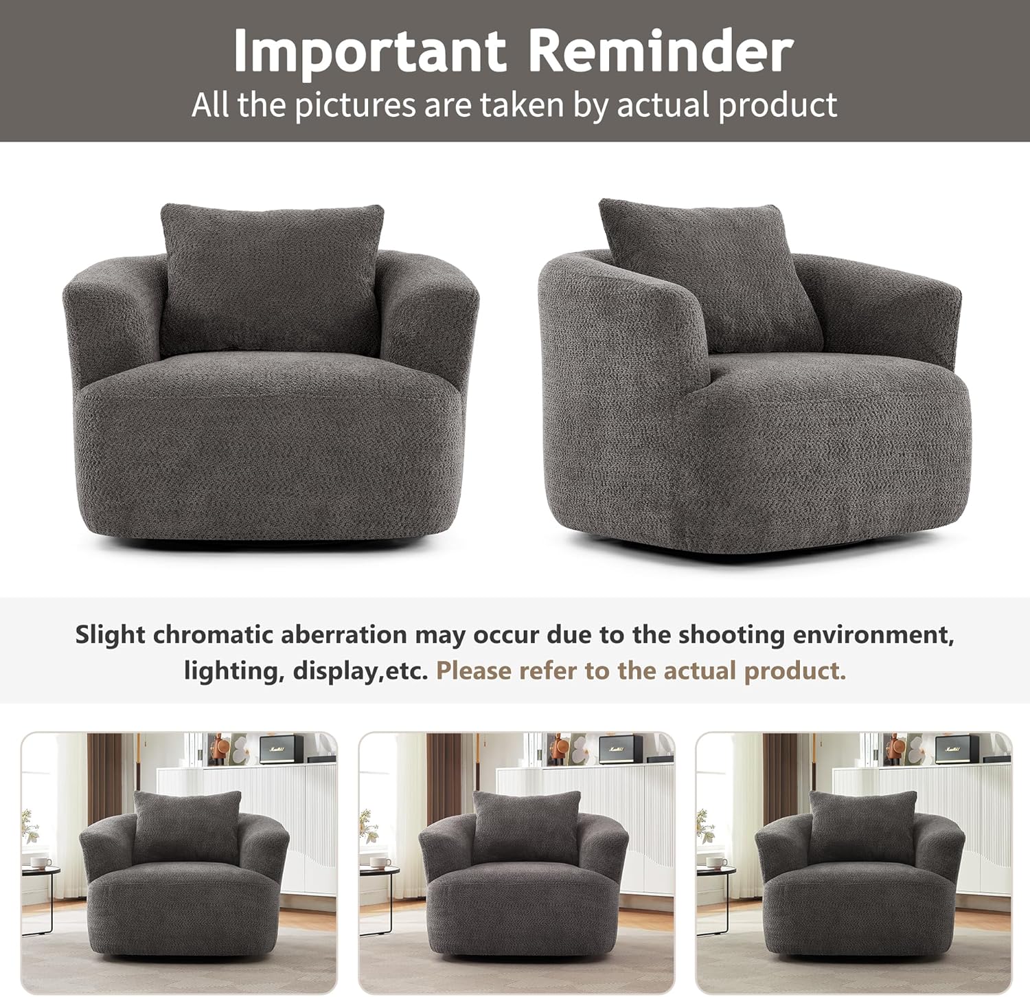 Merax Modern 360° Chenille Swivel Barrel Chair with A Throw Pillow & Armrest, Upholstered Cozy Single Round Sofa with Deep Seating for Living Room Bedroom,Office, Hotel, Easy Assemble, Grey