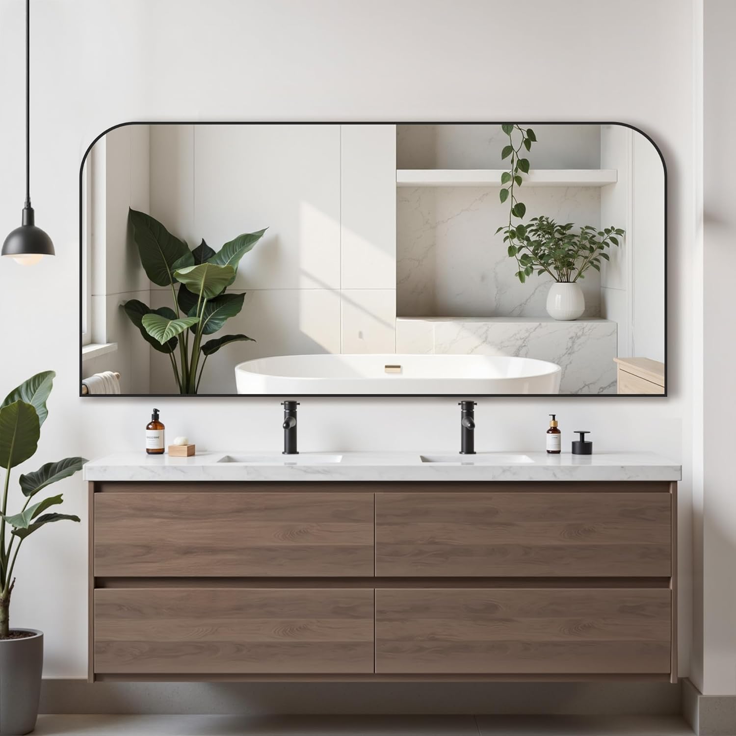 Bathroom Mirror, Wall Mirrors, Black Metal Framed Wall-Mounted Mirrors, Bathroom Vanity Mirror for Over Sink, Living Room, Bedroom, Entryway, 72x32 Inch, Black