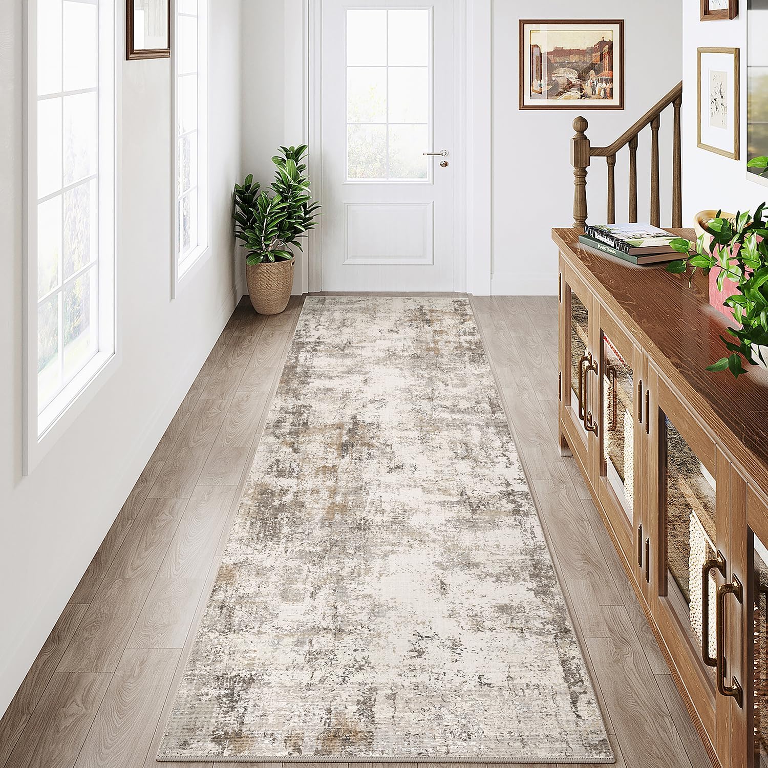 2x7 Washable Runner Rug Brown Grey Neutral Abstract Hallway Kitchen Living Room Bedroom Non Slip Throw Rug Soft Low Pile Indoor Carpet for Entrance Laundry Bathroom
