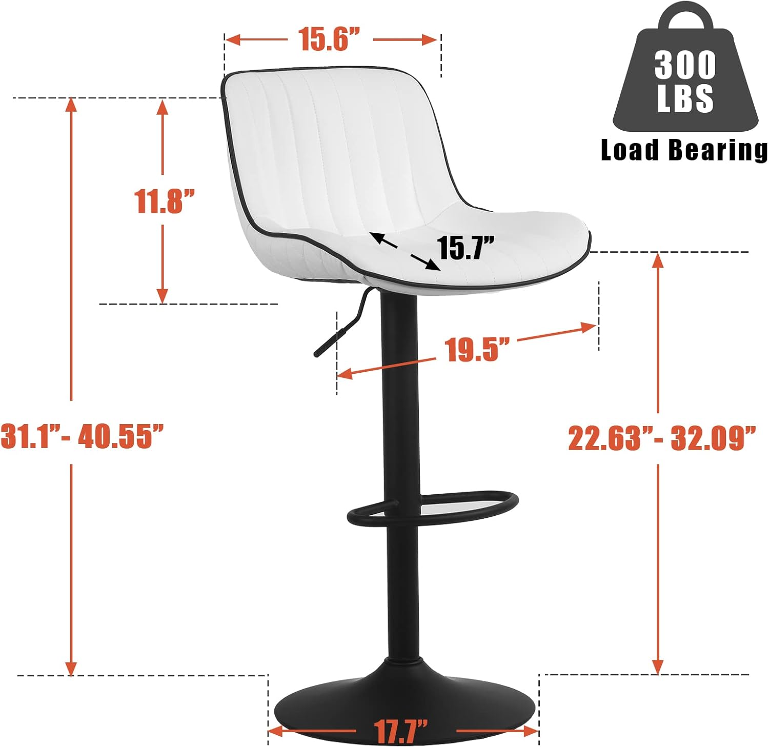 - ❤【Quick Assembly】The adjustable modern barstools seat height adjustable : 22.63"-32.09"H from floor, suitable for 32''-42'' high table; Seat Size: 19.5"W x 15.7"D; Weight Capacity: 300 lbs. The bar stools set of 2 witn backs packed with assembly instruction, screws and assembly tools, each bar chair only needs 3-5 minutes to finish the installation