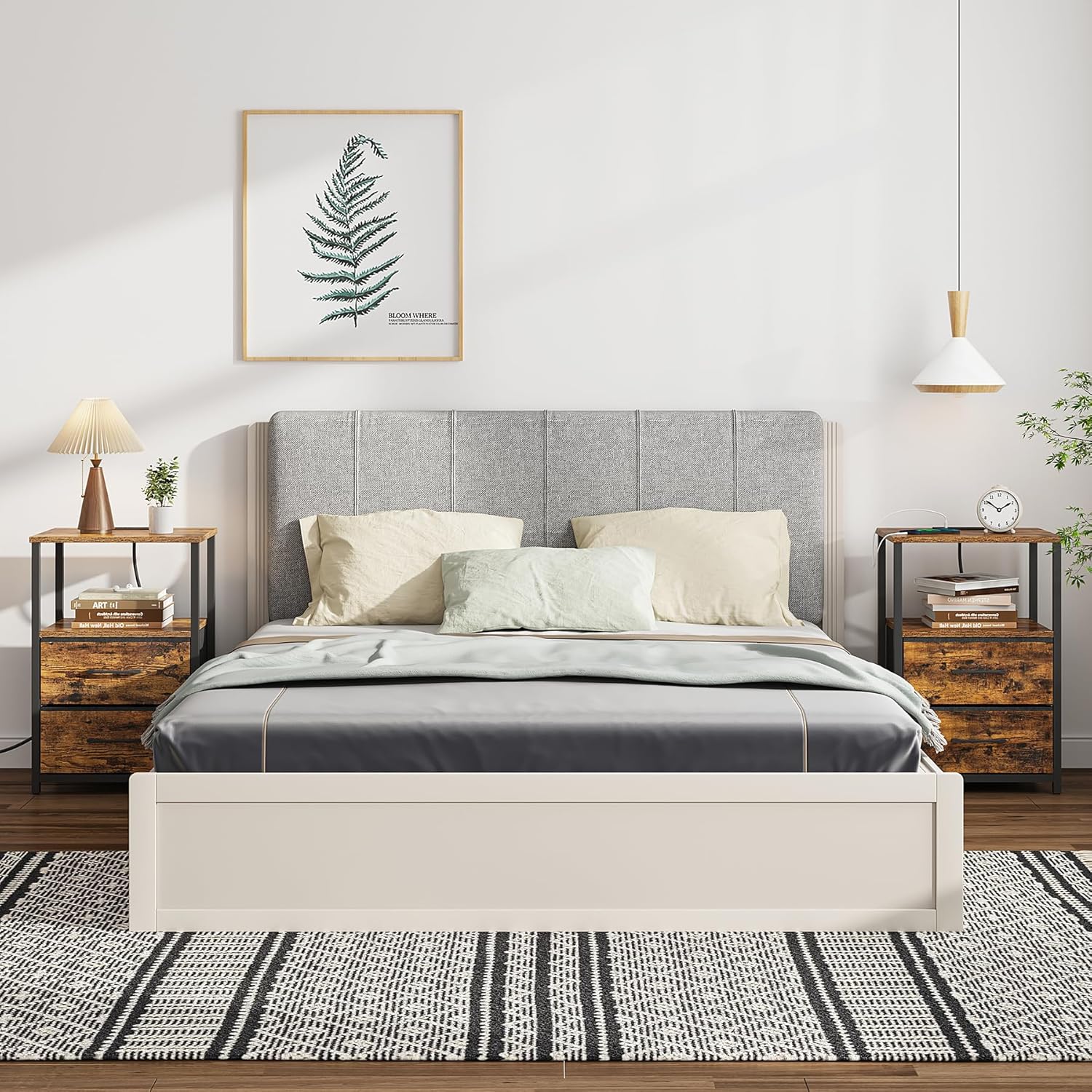- [Easy to Assemble and Clean] This night stand comes with numbered parts and clear instructions to help you finish the assembly easily. You just need a damp cloth to keep the table clean. Equipped with adjustable foot mats to accommodate uneven surfaces and prevent scratching the floor.