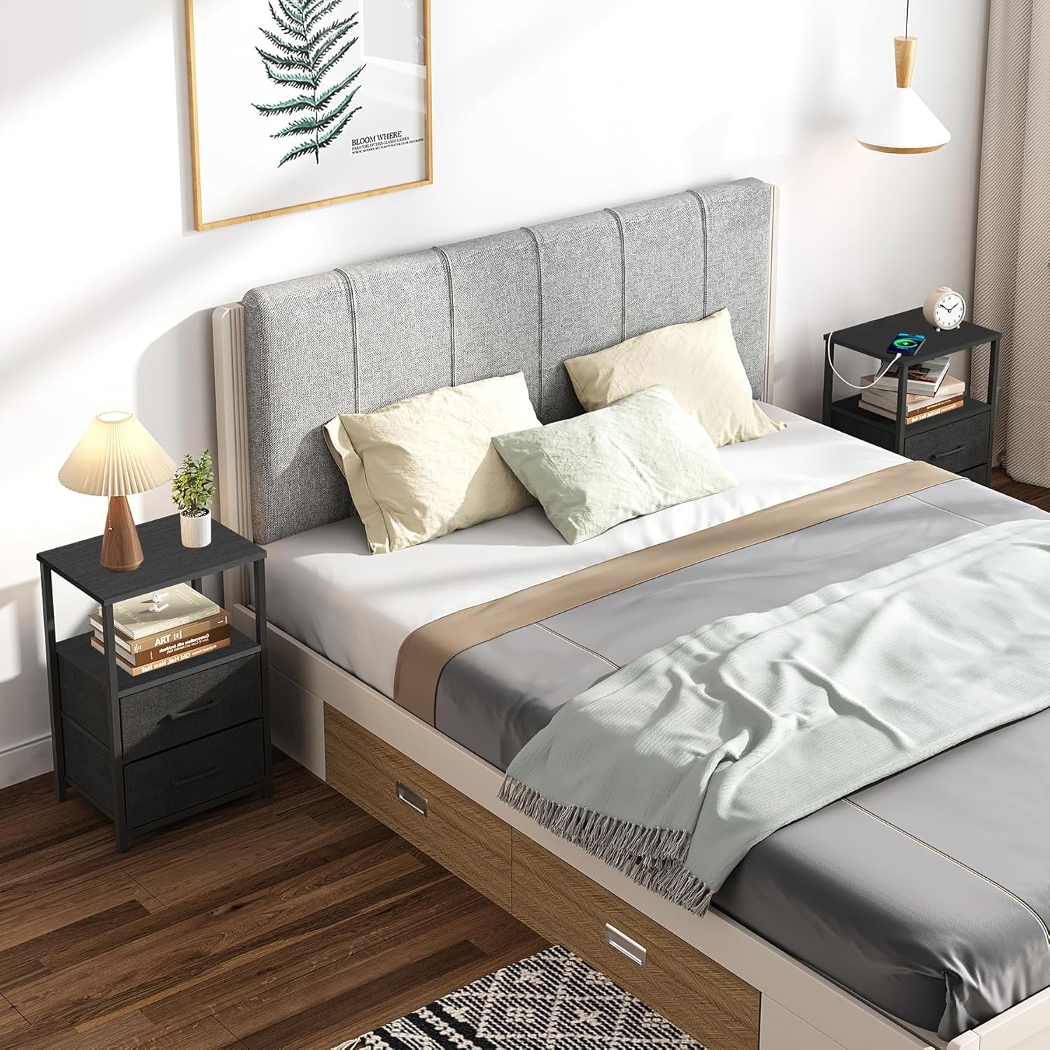 - [2 Large Fabrics Drawers] The bedroom nightstand has and two open shelves for your magazines, boxes, and general living room knick-knacks, and 2 Fabric drawers for private stuff. The practical drawer easily goes in and out. It also arouses a guest’s curiosity.
