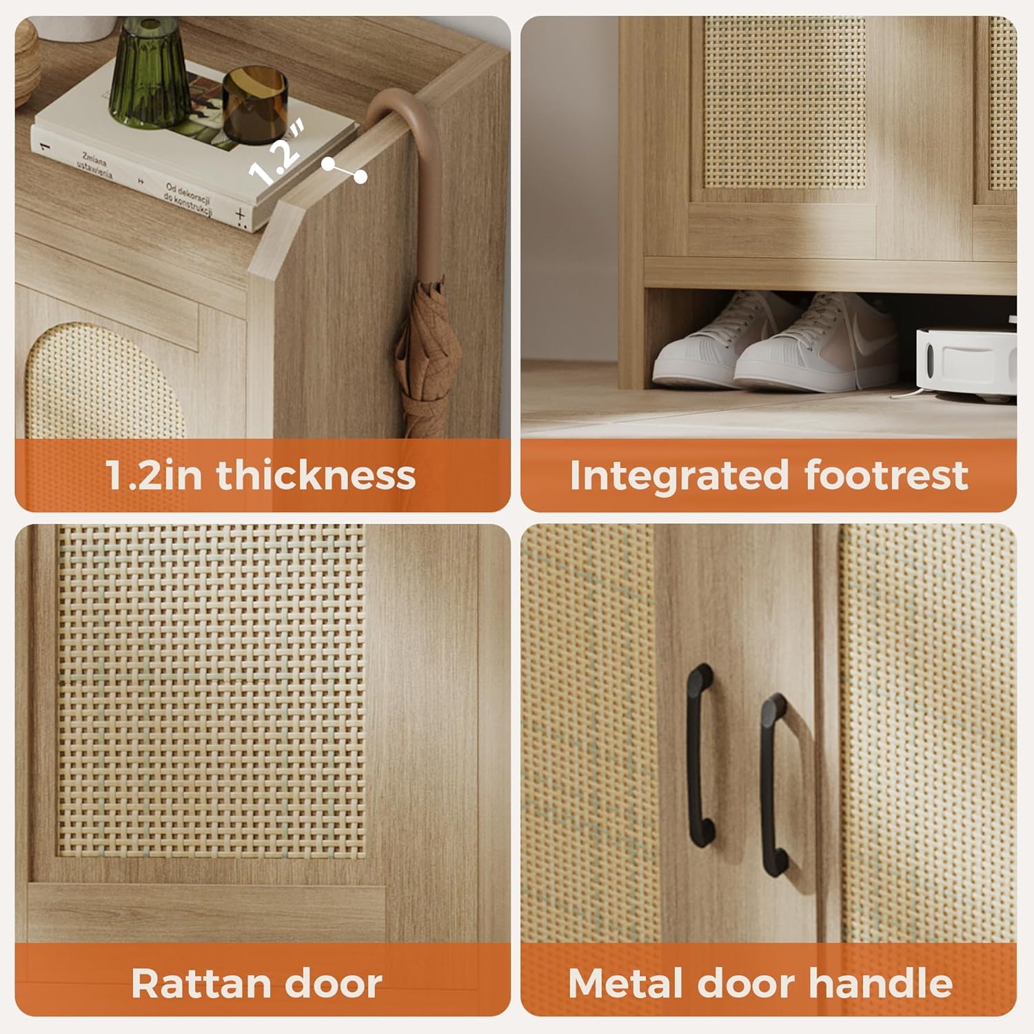Shoe Cabinet Storage for Entryway, Rattan Storage Cabinet, Wooden Shoe Rack with Doors, Farmhouse Boho Wood Shoe Organizer Cabinet for Hallway (Oak)