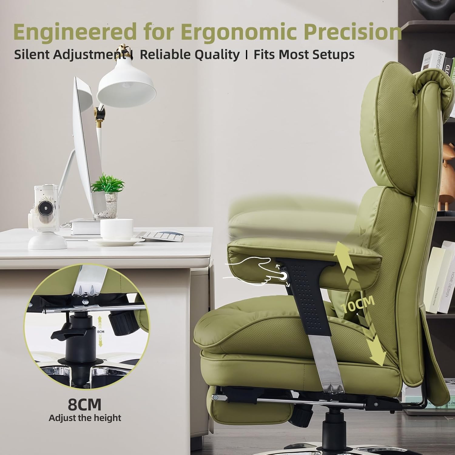 Efomao Big and Tall Office Chair with Footrest – High Back Computer Chair with Adjustable Armrests,Executive Office Chair with Wide Seat, Modern Desk Chair for Home Office, Gaming, or Study, Green