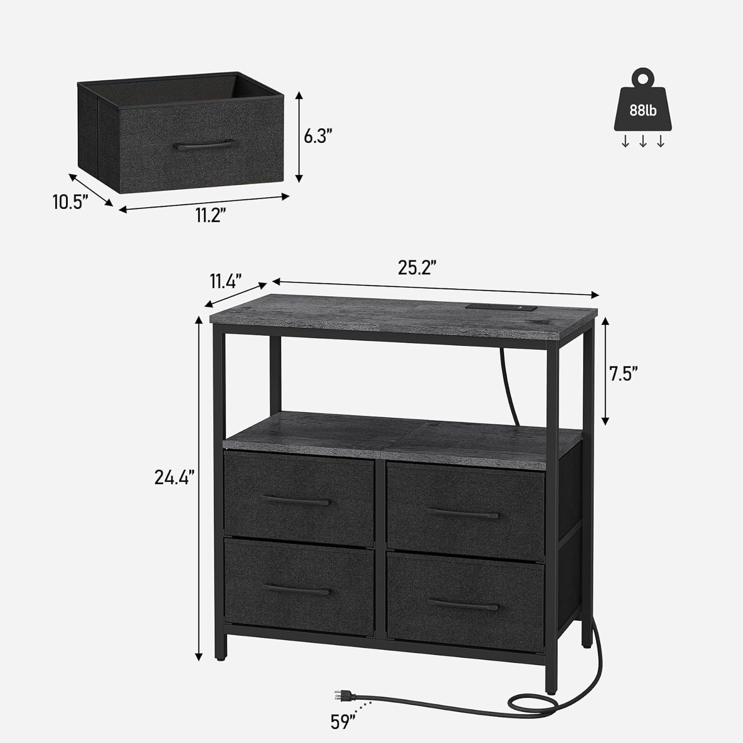 - [Modern Design] MDF wood board, fabric drawer. Measuring 24.2" H x 11.4" D x 25.2" W overall, this bed side table with fabric drawers is a great item to place next to your living room sofa or recliner, bed side.