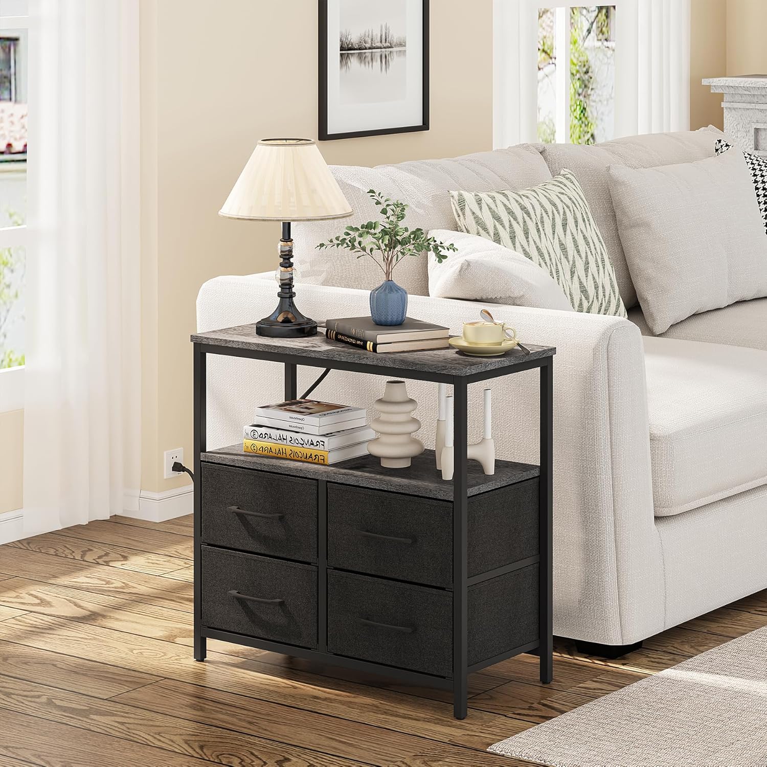 TUTOTAK Large Night Stand with Charging Station, Nightstand with USB and Type-C Port, Bedside Table with Cloth Drawers, End Table for Livingroom, Bedroom, Charcoal Grey TB01BY081