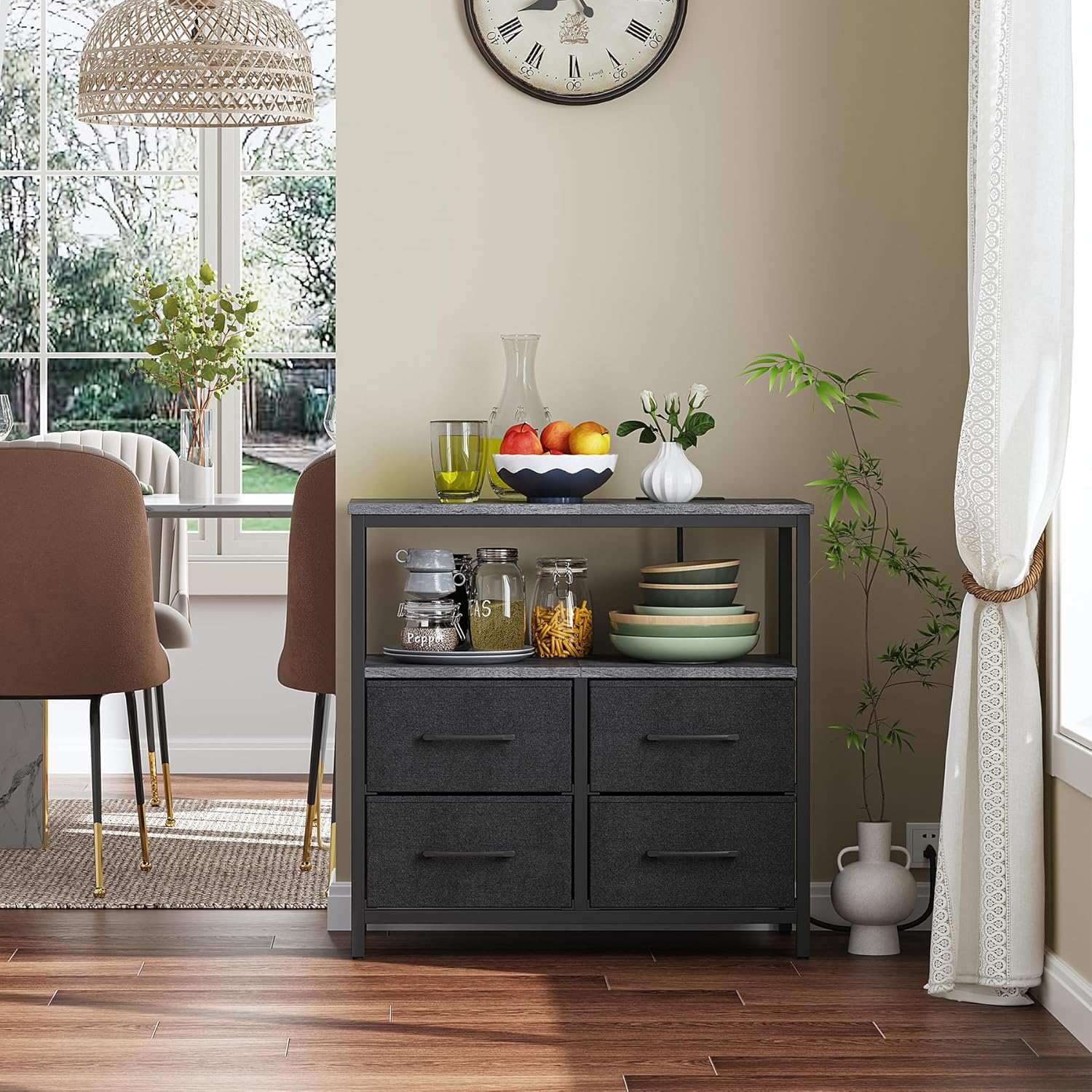 - [4 Large Fabrics Drawers] The bedroom nightstand has and two open shelves for your magazines, boxes, and general living room knick-knacks, and 4 Fabric drawers for private stuff. The practical drawer easily goes in and out. It also arouses a guest’s curiosity.