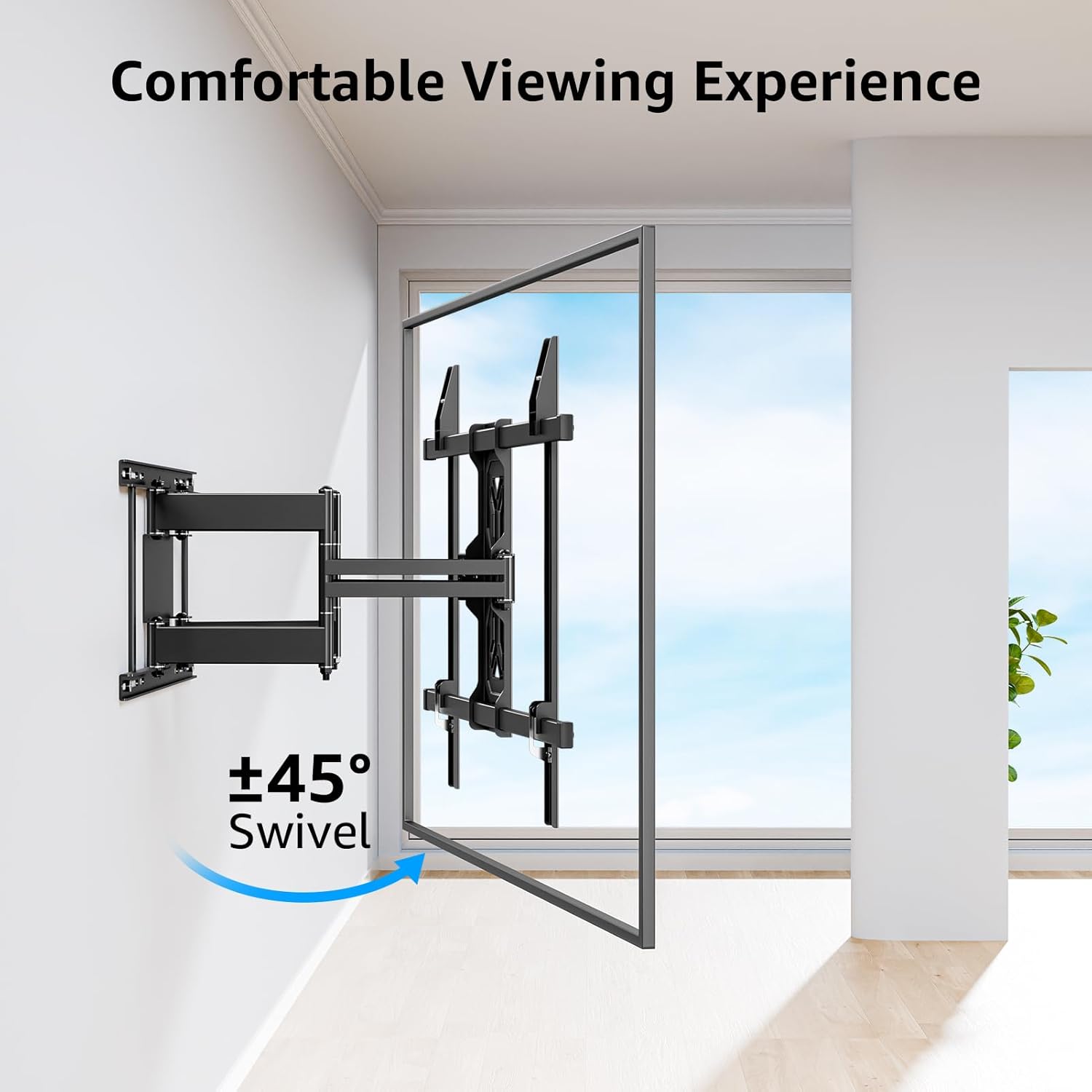 - Excellent Viewing Experience: Achieve the best seat in the house. Tilt your screen +15°/-15° to reduce glare or swivel it left or right up to ±45° for flexible viewing in open-plan spaces. The dual arms extend to 19.9", making this full motion TV moun ideal for flexible family rooms, gaming dens, or studio layouts.