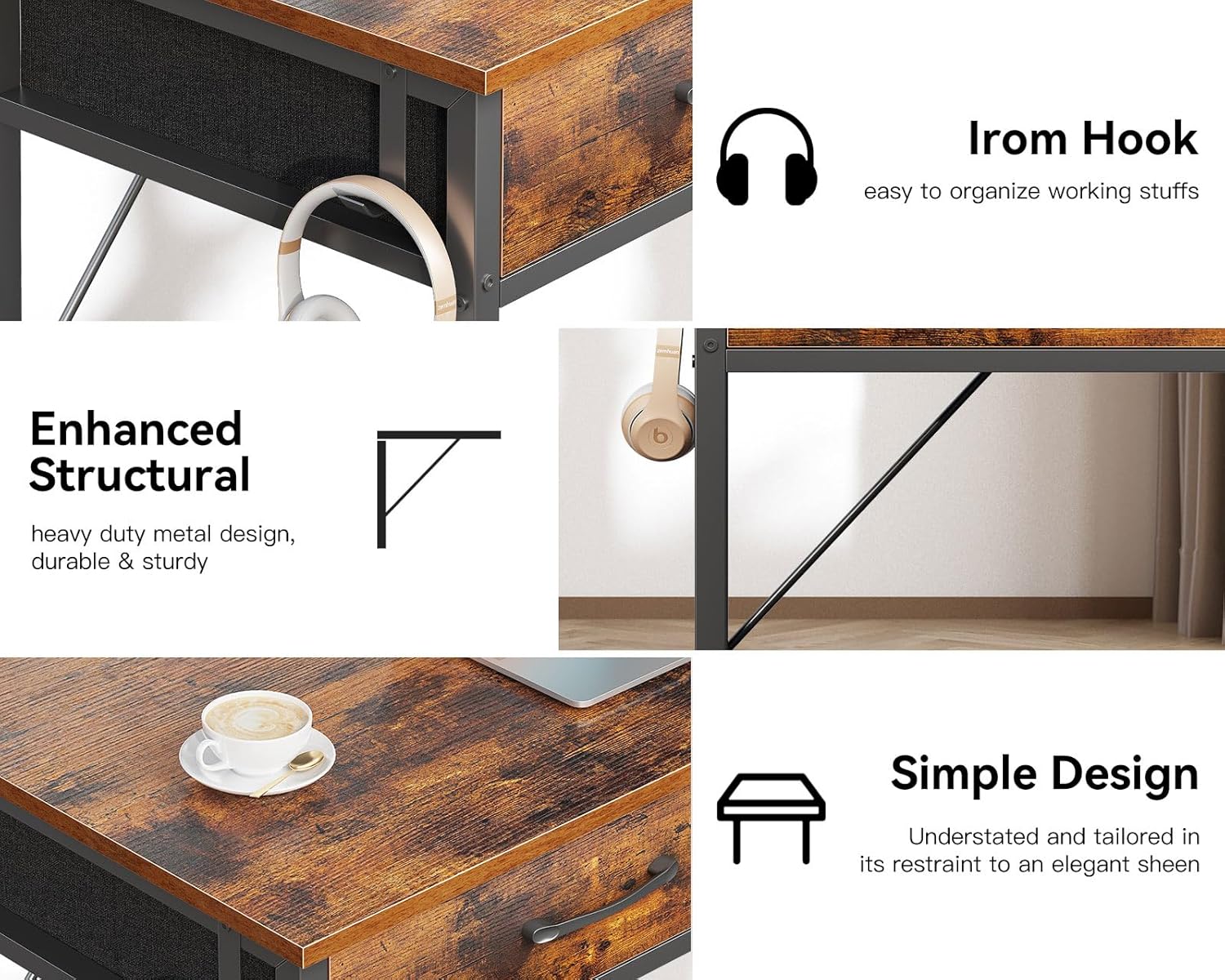 - Practical Storage with 2 Fabric Drawers. This desk features 2 durable fabric drawers, offering convenient storage for office supplies, books, or personal items. Keep your workspace organized and clutter-free while maintaining easy access to essentials.