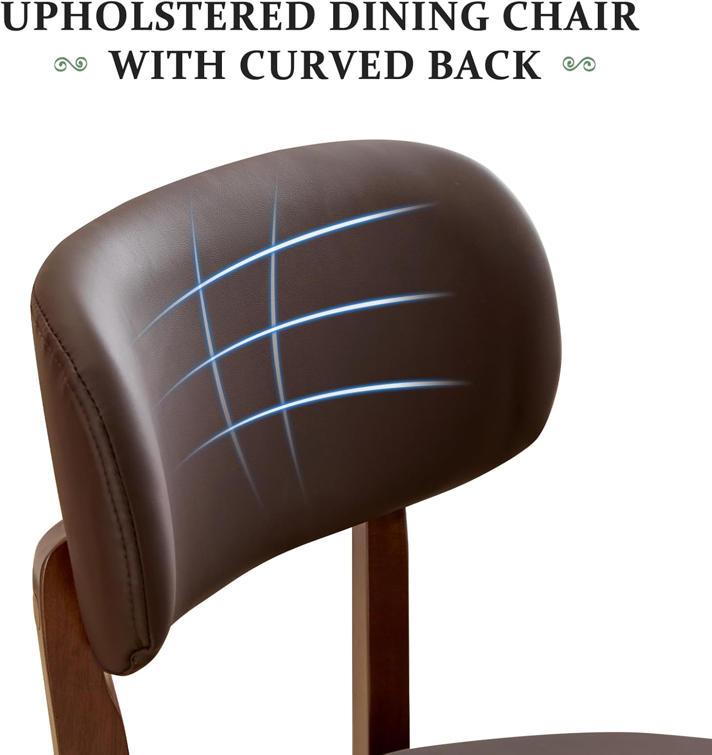 Furniliving Wooden Dining Chairs Set of 6, Mid-Century Modern Leather Upholstered Kitchen Chair with Solid Oak Wood, Farmhouse Dining Room Chairs, Brown