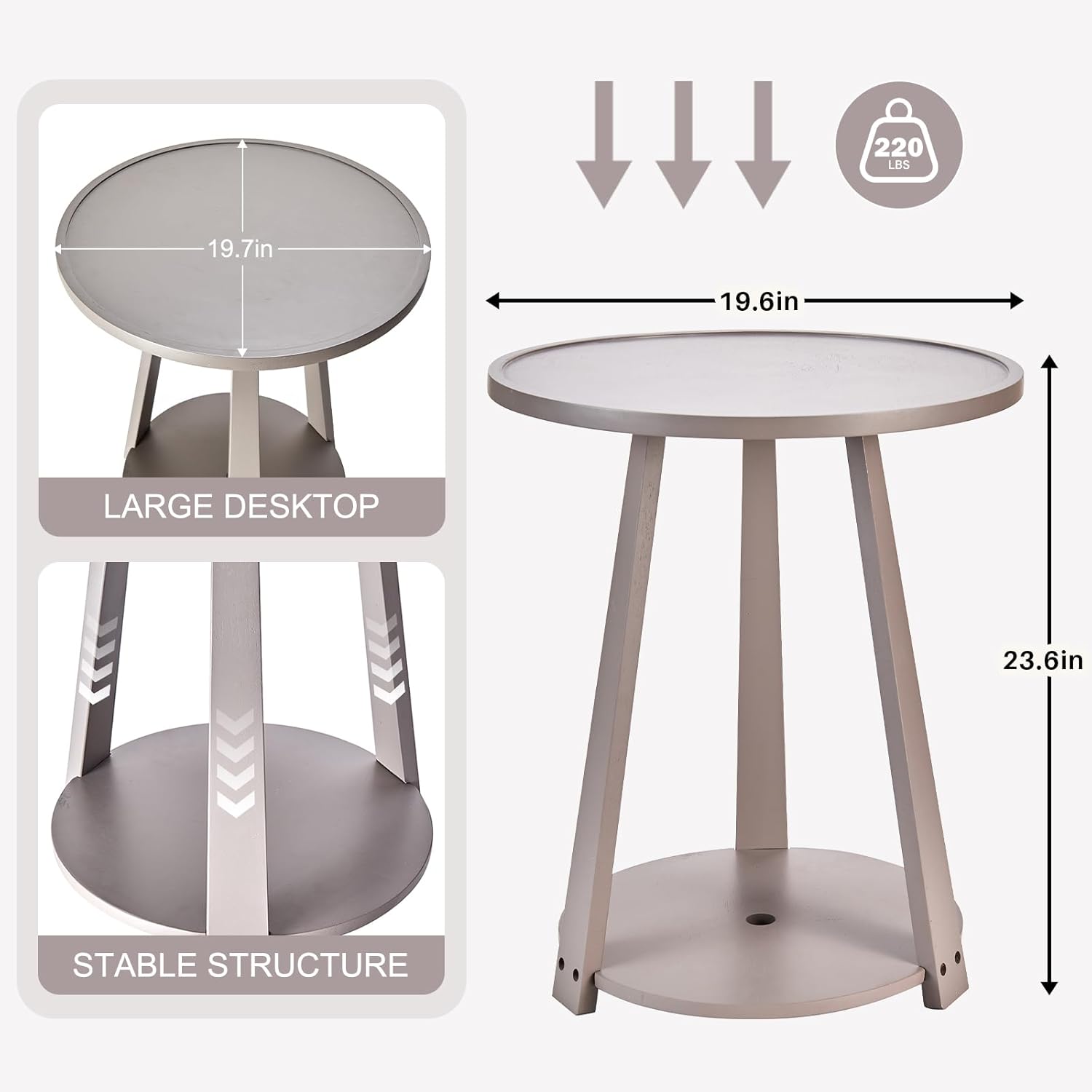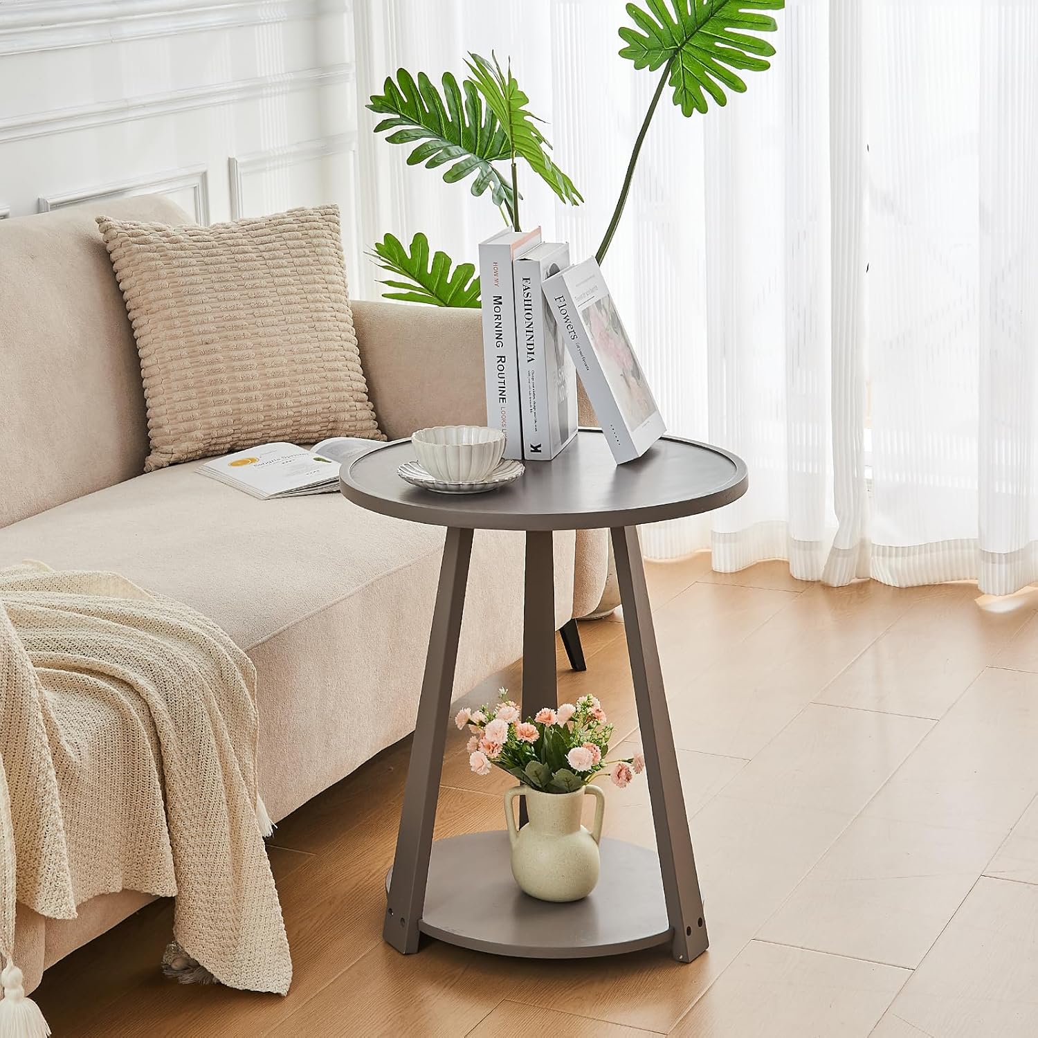 - 【Fashion Meets Function】This gray solid wood round side table features a minimalist triangular support structure that embodies contemporary style, functionality, and stability.