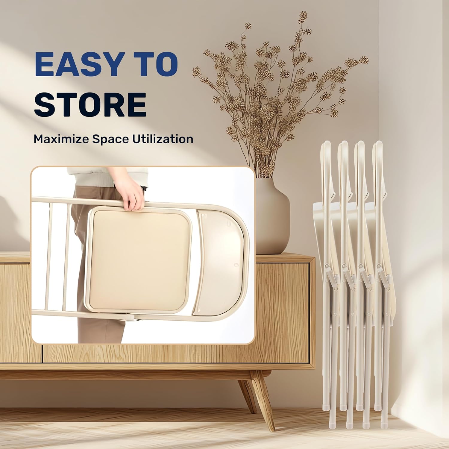 - Easy to use: Require no assembly. Foldable seats can be easily opened and folded in seconds. Perfect chairs in bedrooms, dorm rooms, meeting rooms, apartments, lounging, gardens, reception areas for weddings, gatherings, church, and other events