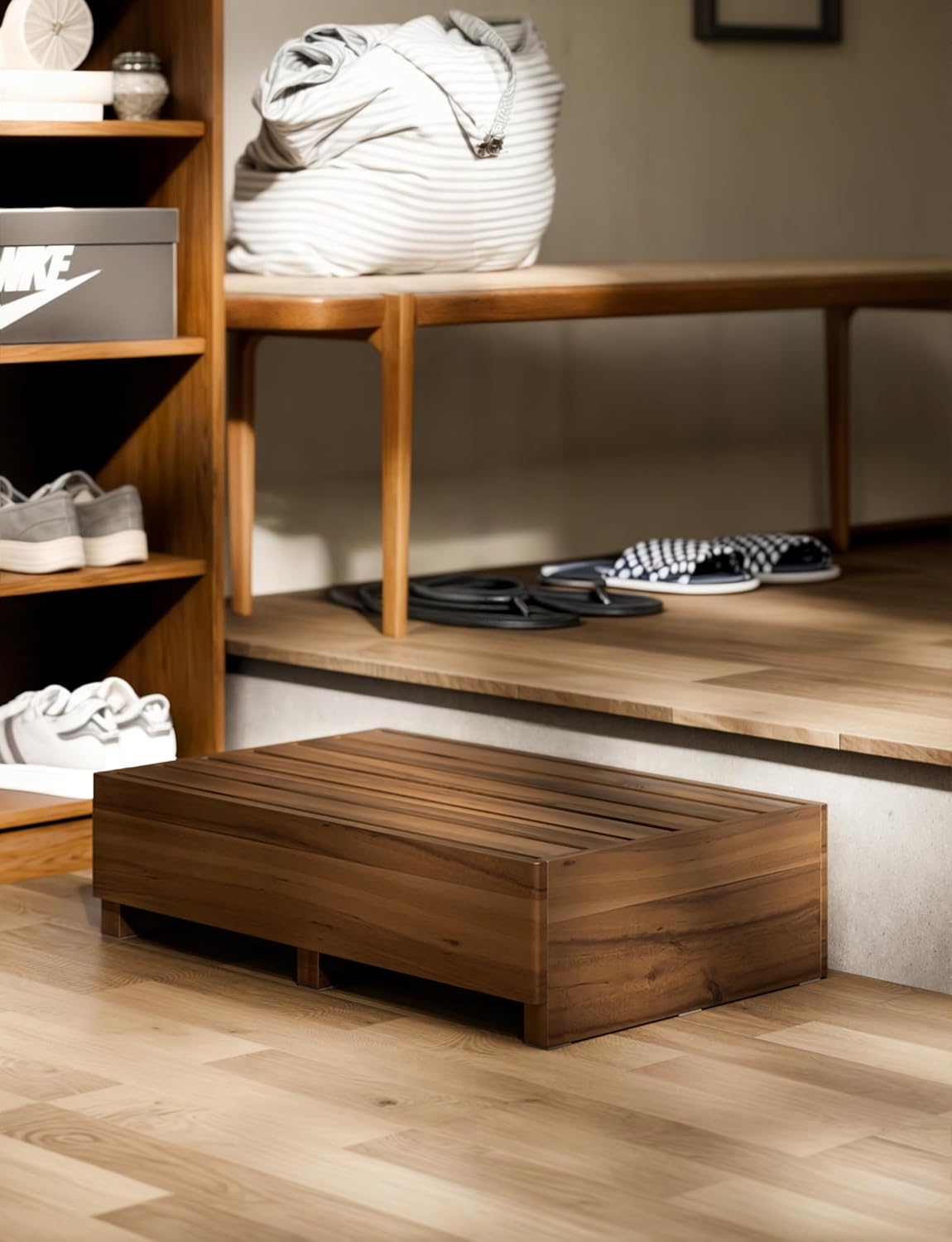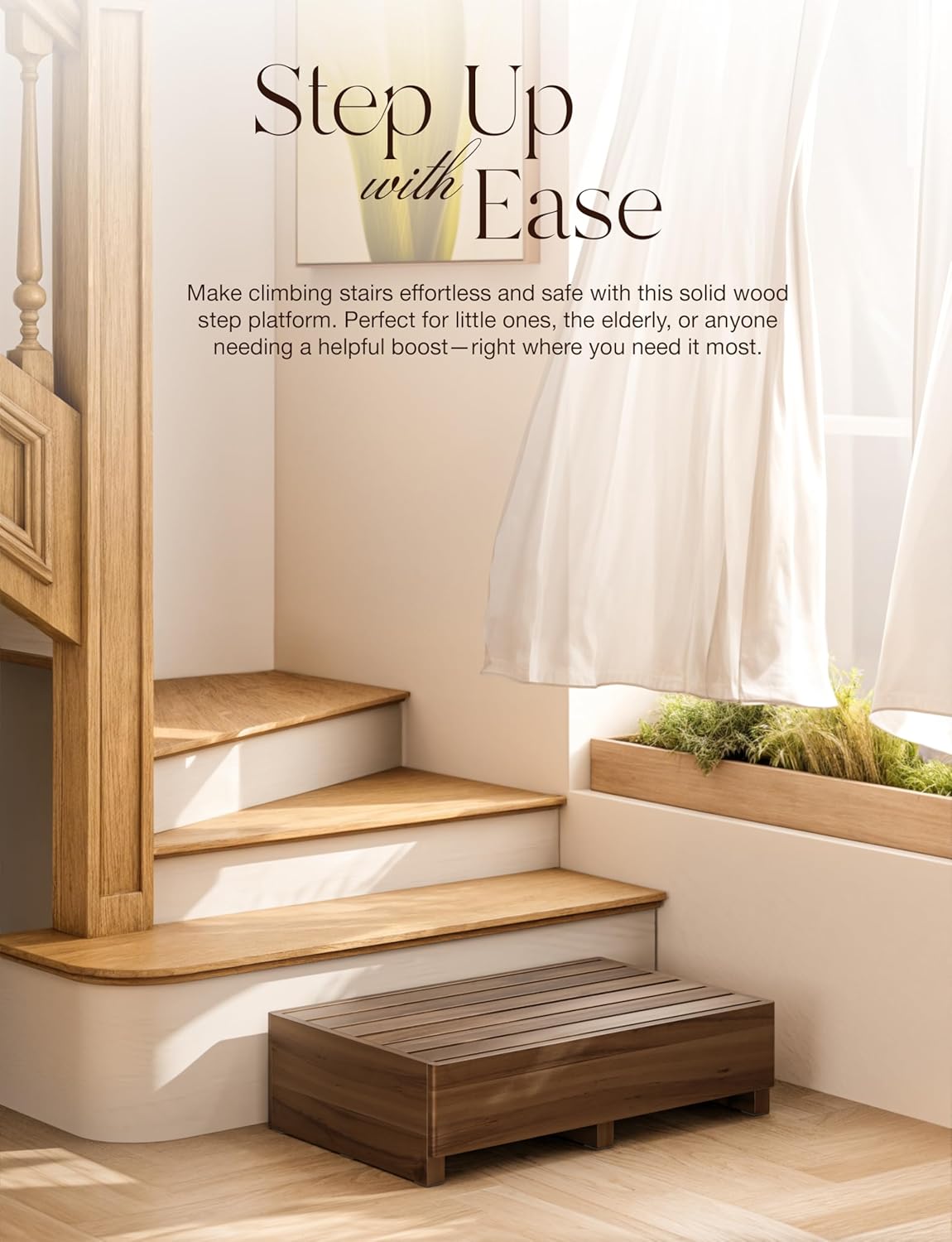 - Versatile for Indoor & Outdoor Settings: Perfect as a bedside riser, kitchen step, bathroom stool, porch or garden step, this wooden mobility stepping stool adapts easily to assist with household chores, bedtime routines, or even as a stylish plant stand