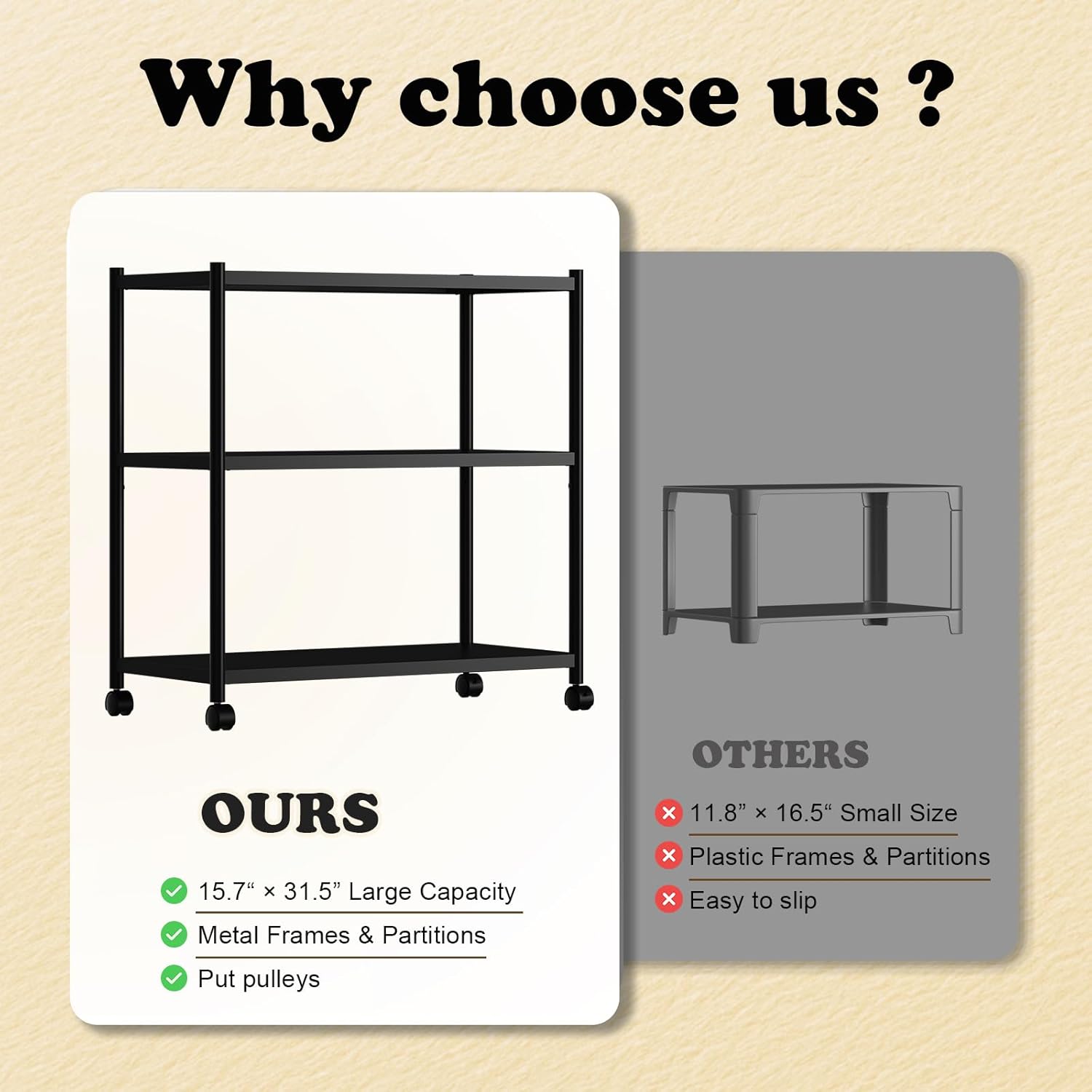 - Heavy-Hitter Shelving System:66 lbs per shelf Bring on the weight Stack encyclopedias gaming consoles or art supplies without sagging Stainless steel frame stays sturdy through rearrangements
