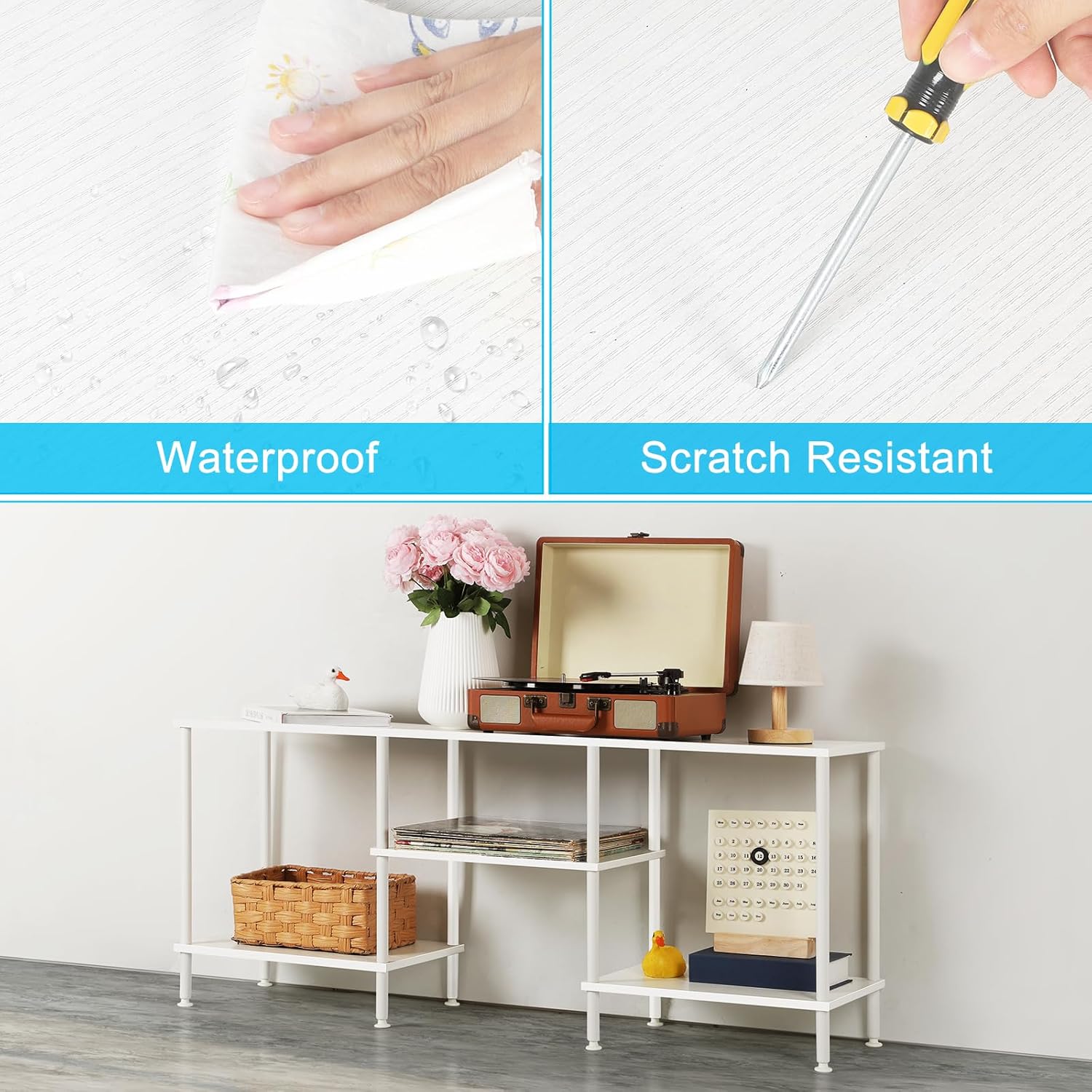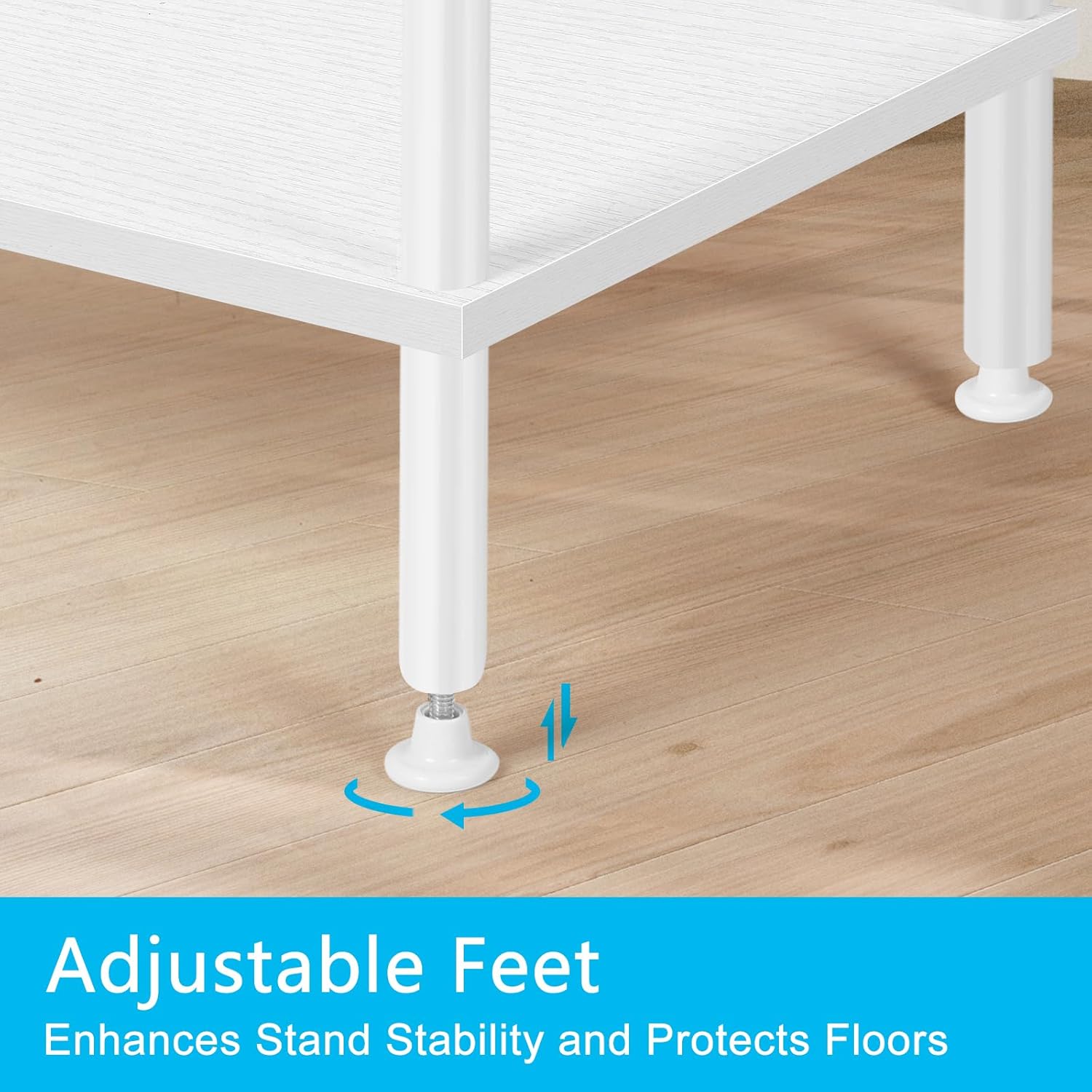 - Stable Support: This solid metal frame makes the overall structure of the white tv console will not wobble. The top supports a maximum load of 100 lbs. The bottom has adjustable foot pads to protect your floor from being scratched and keep your TV level