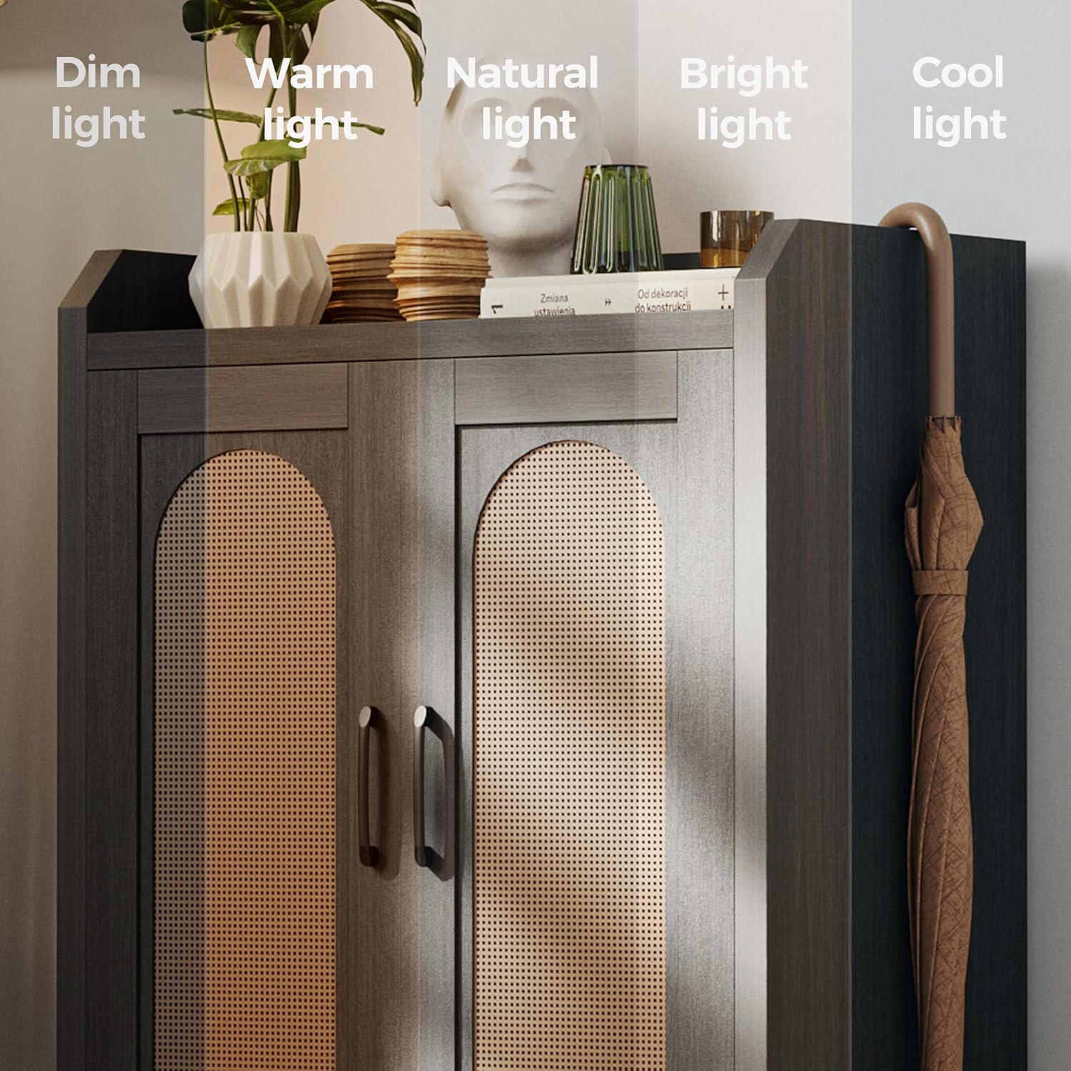 - 【Versatile Design】This modern shoe cabinet has classic rectangular rattan doors, combining minimalist style with classic bohemian style, a stylish and elegant versatile addition to any room in your home. It can be used in your entryway, bedroom, hallway, or even office to keep your space organized.