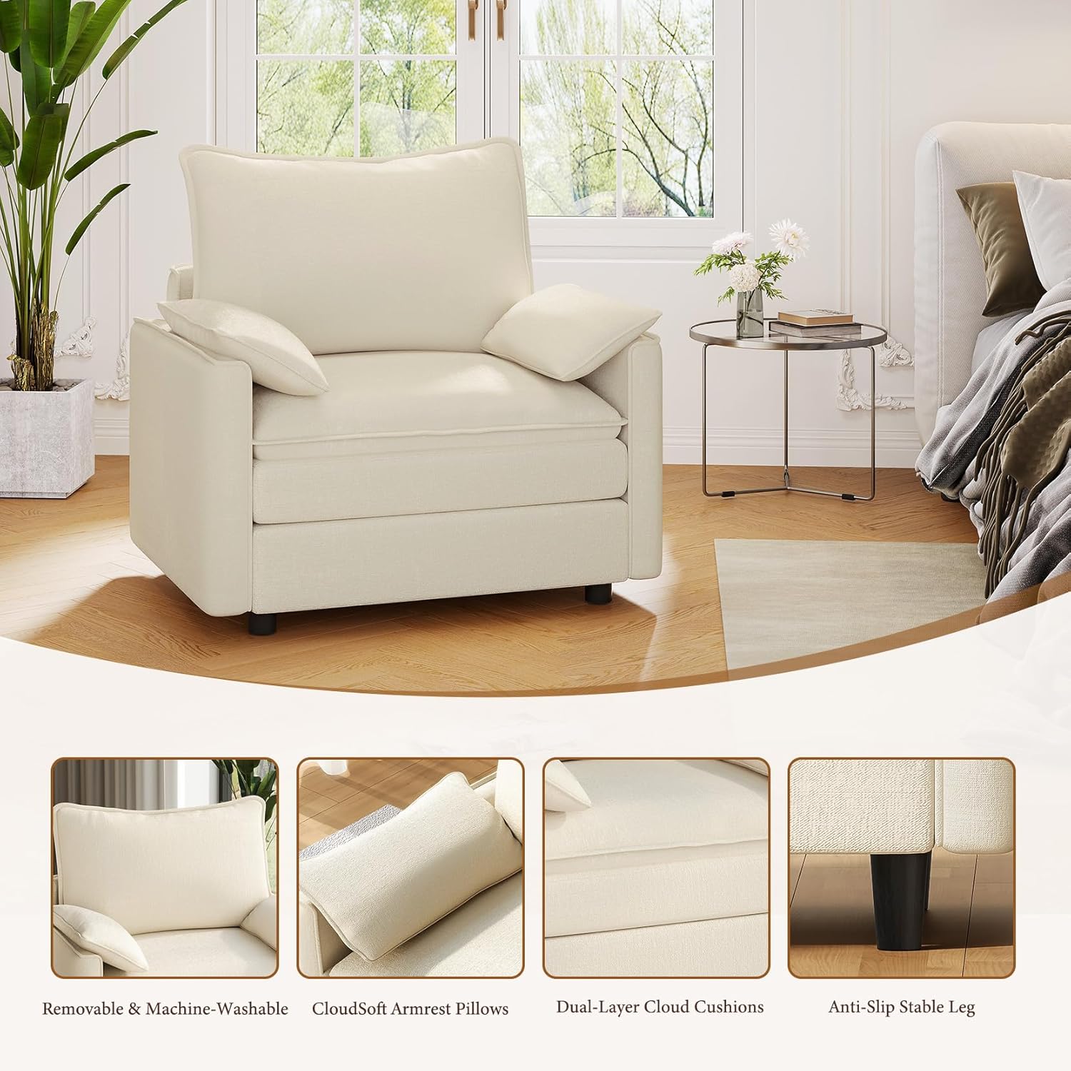 Vesgantti 40" Single Seat Sofa, Comfy Cloud Couch Deep Seat Upholstered Couch Chenille Modern Sofa with Armrest Pillow, Easy Assembly for Living Room, Bedroom and Apartment, Beige
