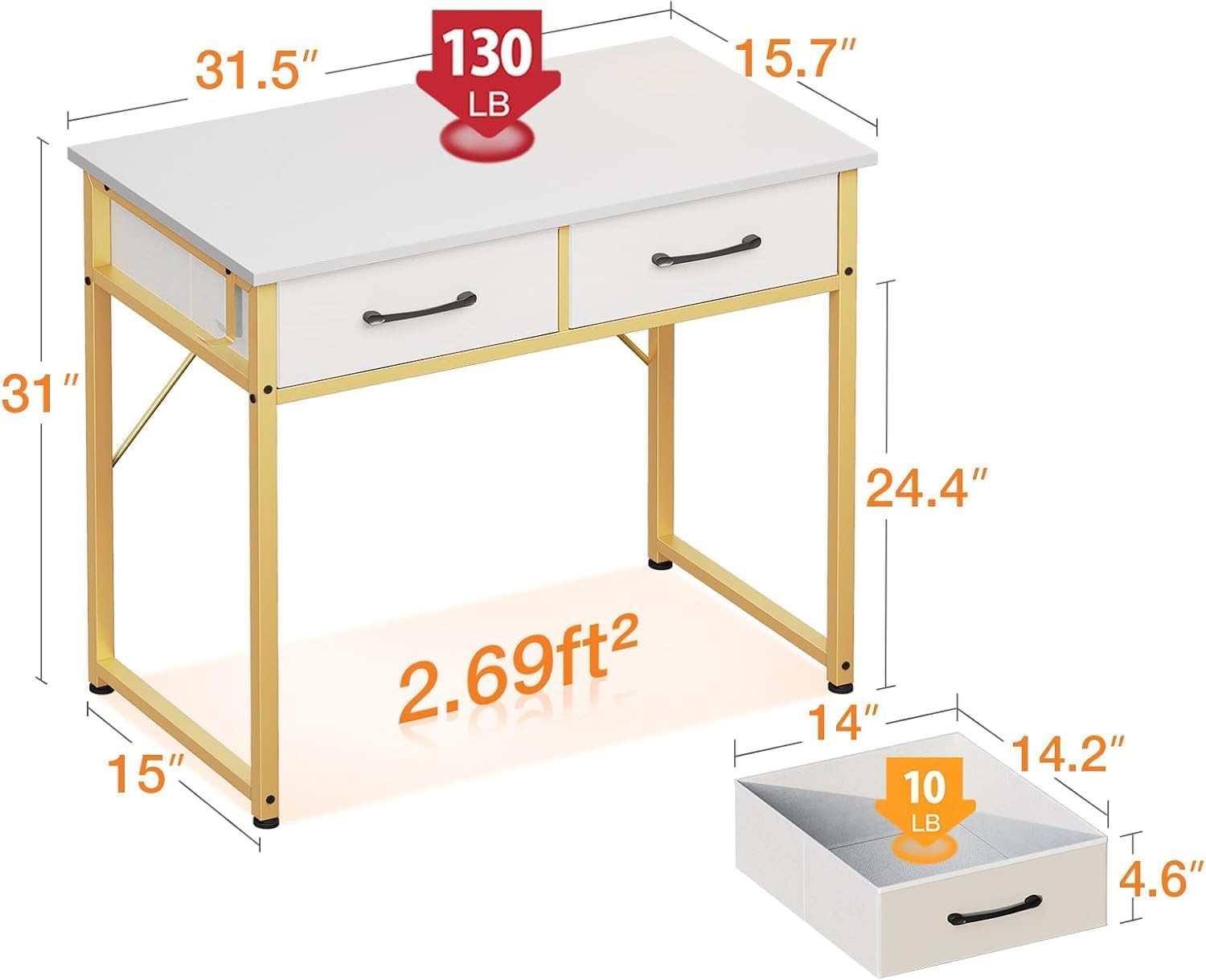 - Practical Storage with 2 Fabric Drawers. This desk features 2 durable fabric drawers, offering convenient storage for office supplies, books, or personal items. Keep your workspace organized and clutter-free while maintaining easy access to essentials.