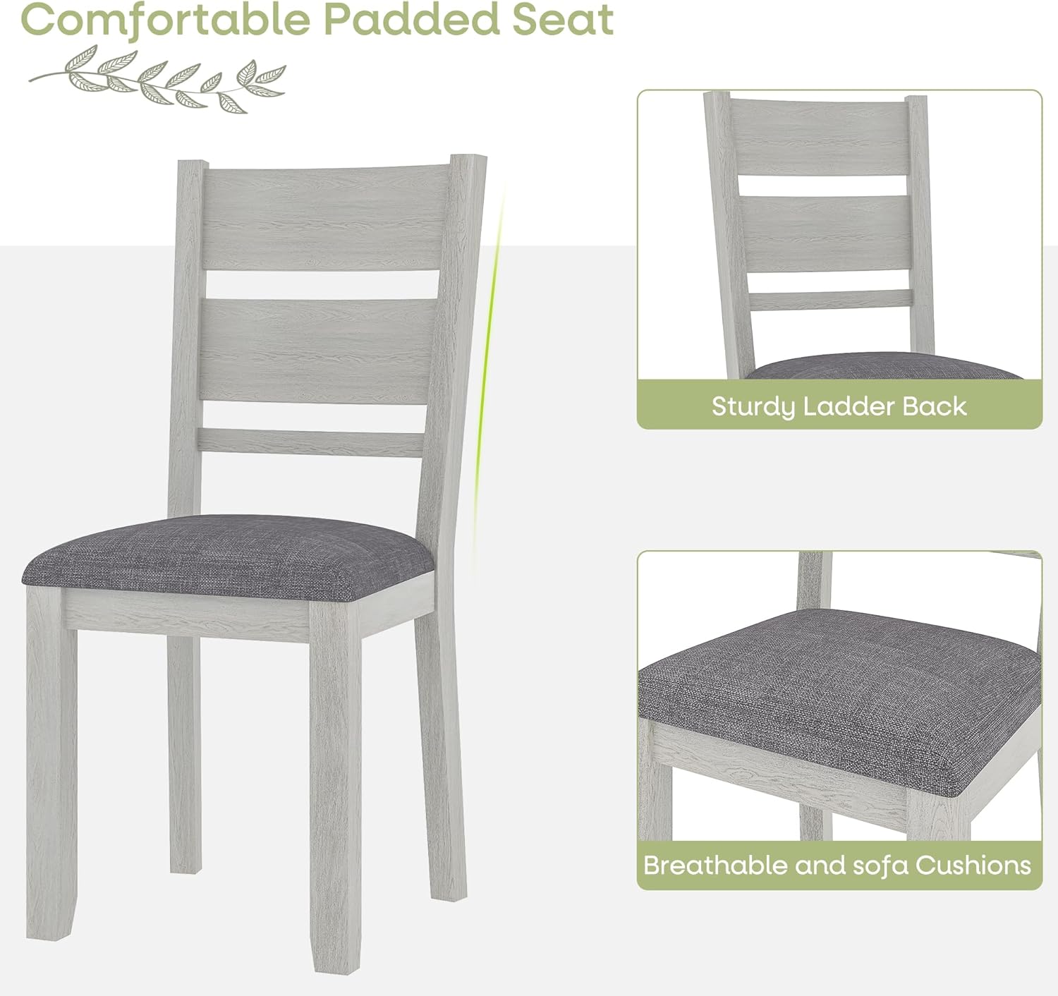 Dining Chairs Set of 6, Solid Wood Farmhouse Chairs with High Back and Upholstered Seat, Easy Assembly for Indoor Home, Dinner, Kitchen, Grey
