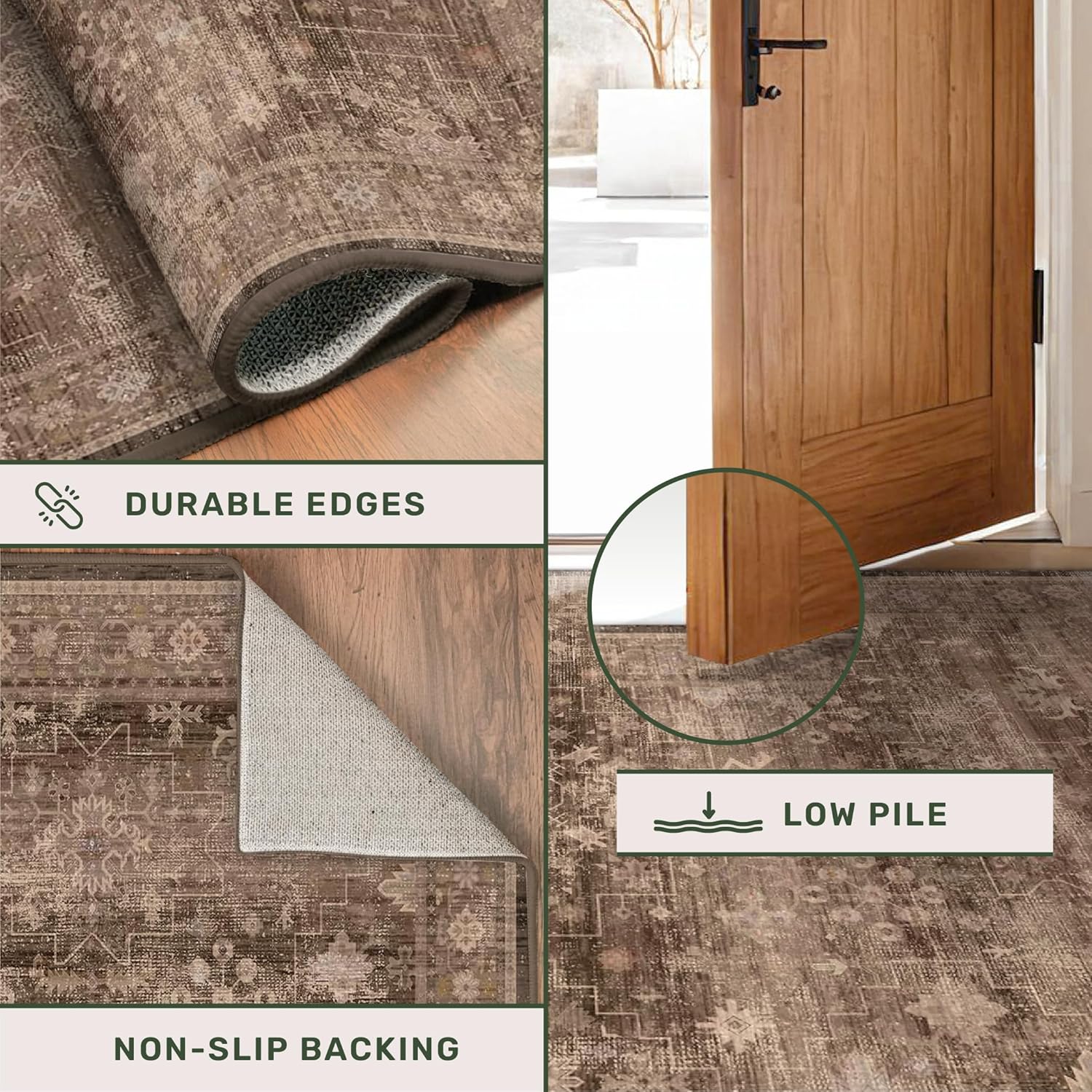 Brown 2x4 Entryway Runner Rugs, Small Runners for Kitchen, Door Mat Indoor Entrance, Bathroom, Non-Slip Low-Pile Washable Stain Resistant, Vintage Taupe Earthy Decor
