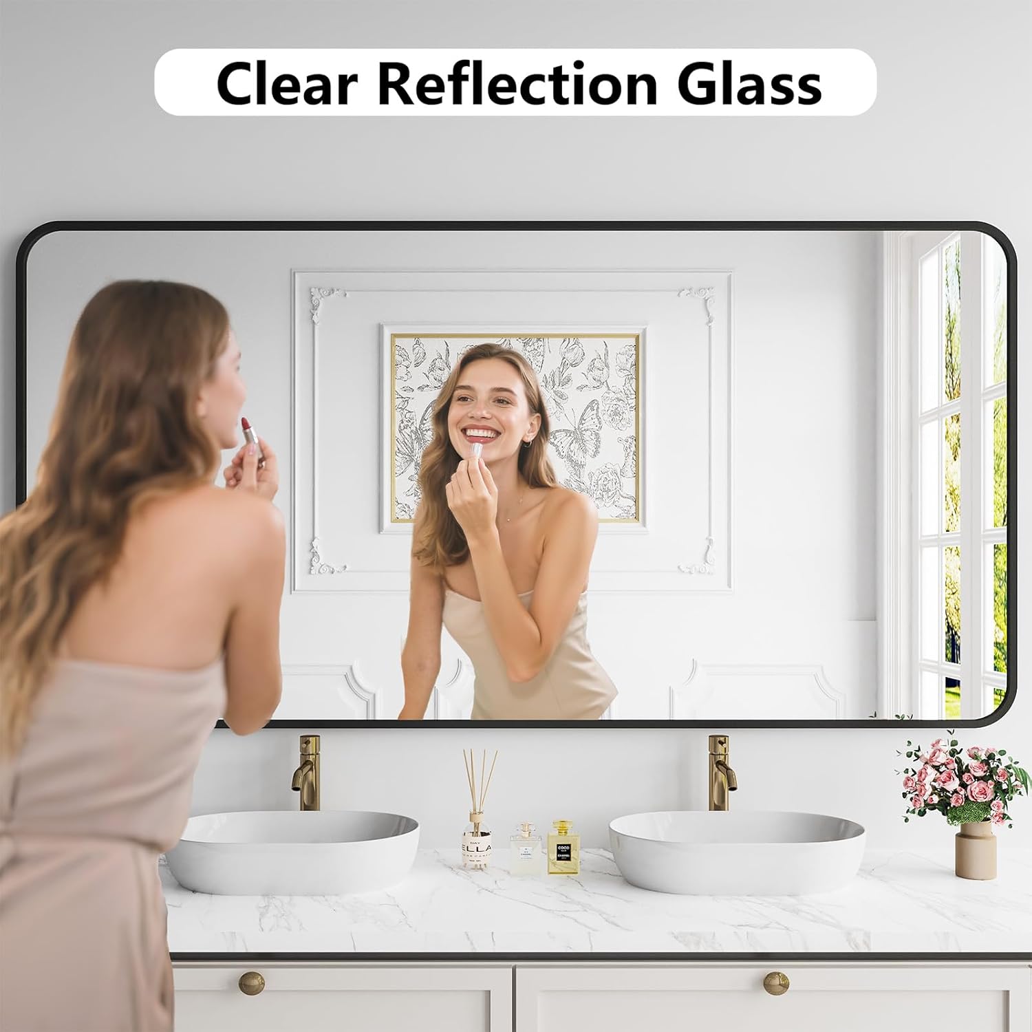 - HD Bathroom Wall & Vanity Mirror: This tempered glass mirror delivers distortion-free clarity for makeup, shaving & more. Perfect over sinks or vanity tables, its steam-resistant, frameless design suits modern/classic decor. True-to-life reflections, zero warping—combines durability & style for daily prep. Elevate your bathroom with sleek, reliable clarity.