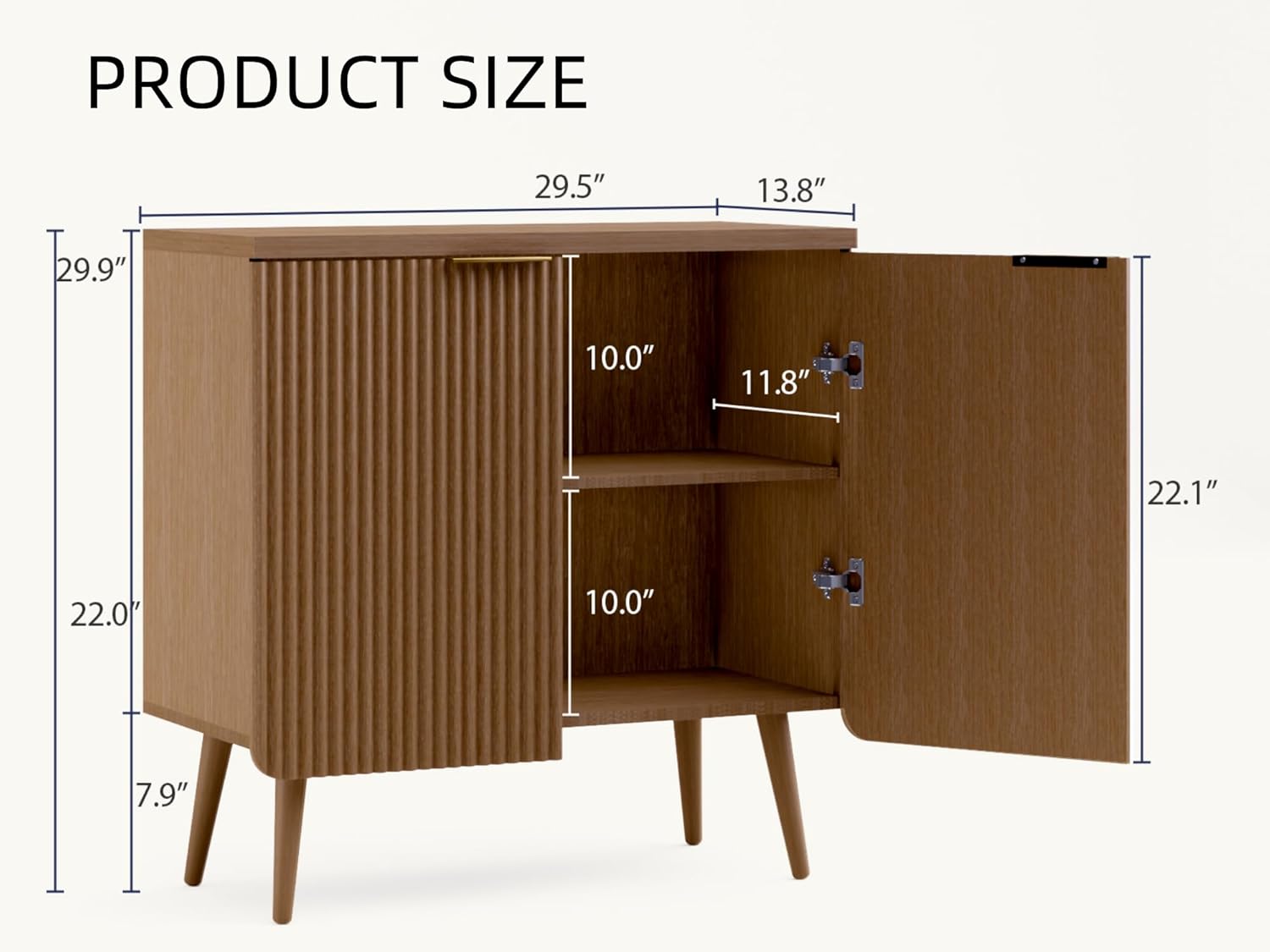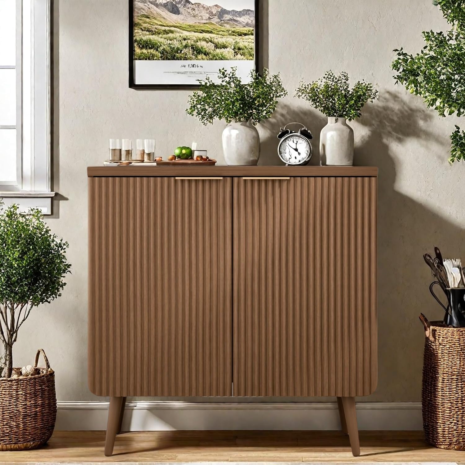 Buffet Cabinet, Sideboard Fluted Cabinet Modern Kitchen Buffet Storage Cabinets with Doors and Shelves, Wood Farmhouse Coffee Bar Station for Entryway & Dining Room & Living Room, Walnut