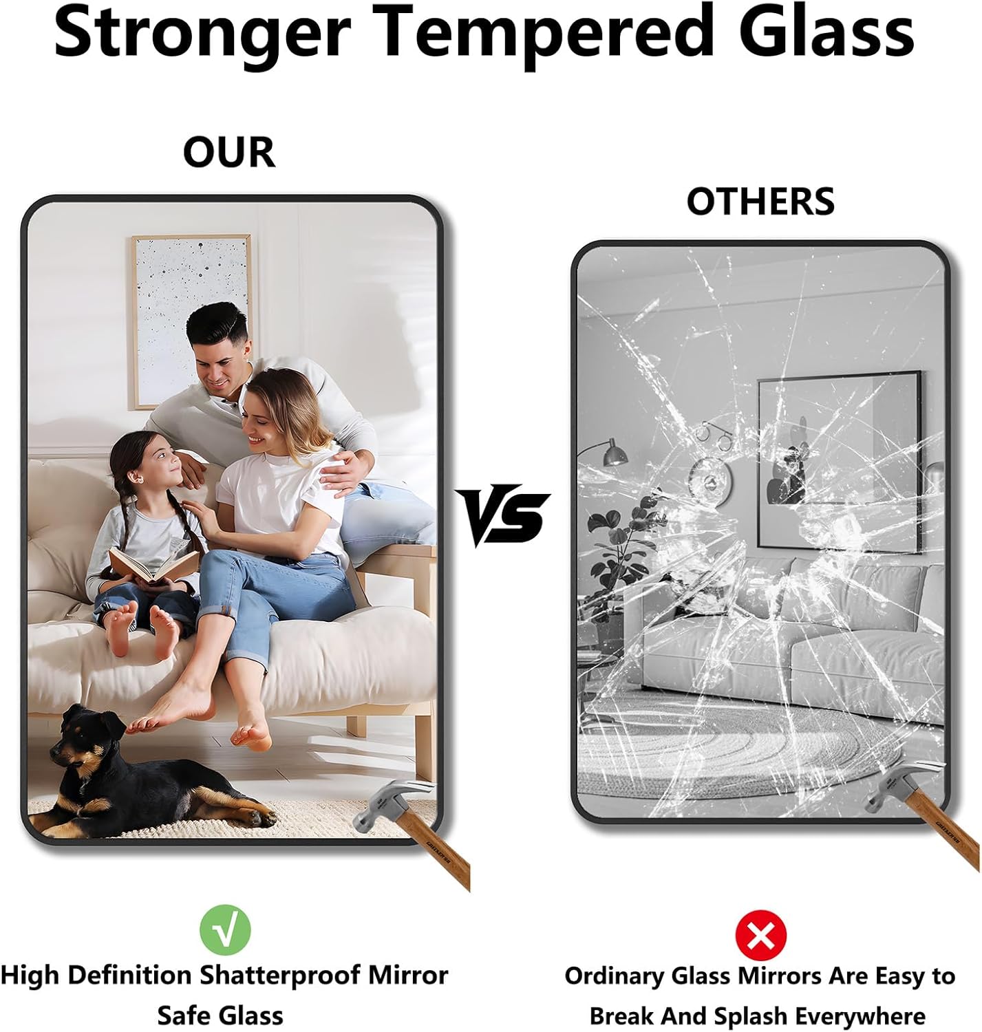 - Unmatched Quality, Start to Finish: For years, we’ve obsessed over every detail—from sturdy frames to crystal-clear glass—to deliver mirrors that stand the test of time. We use premium materials and meticulous packaging, so your mirror arrives in perfect condition and stays flawless for years. No shortcuts, no compromises: just mirrors built for durability, style, and total satisfaction.