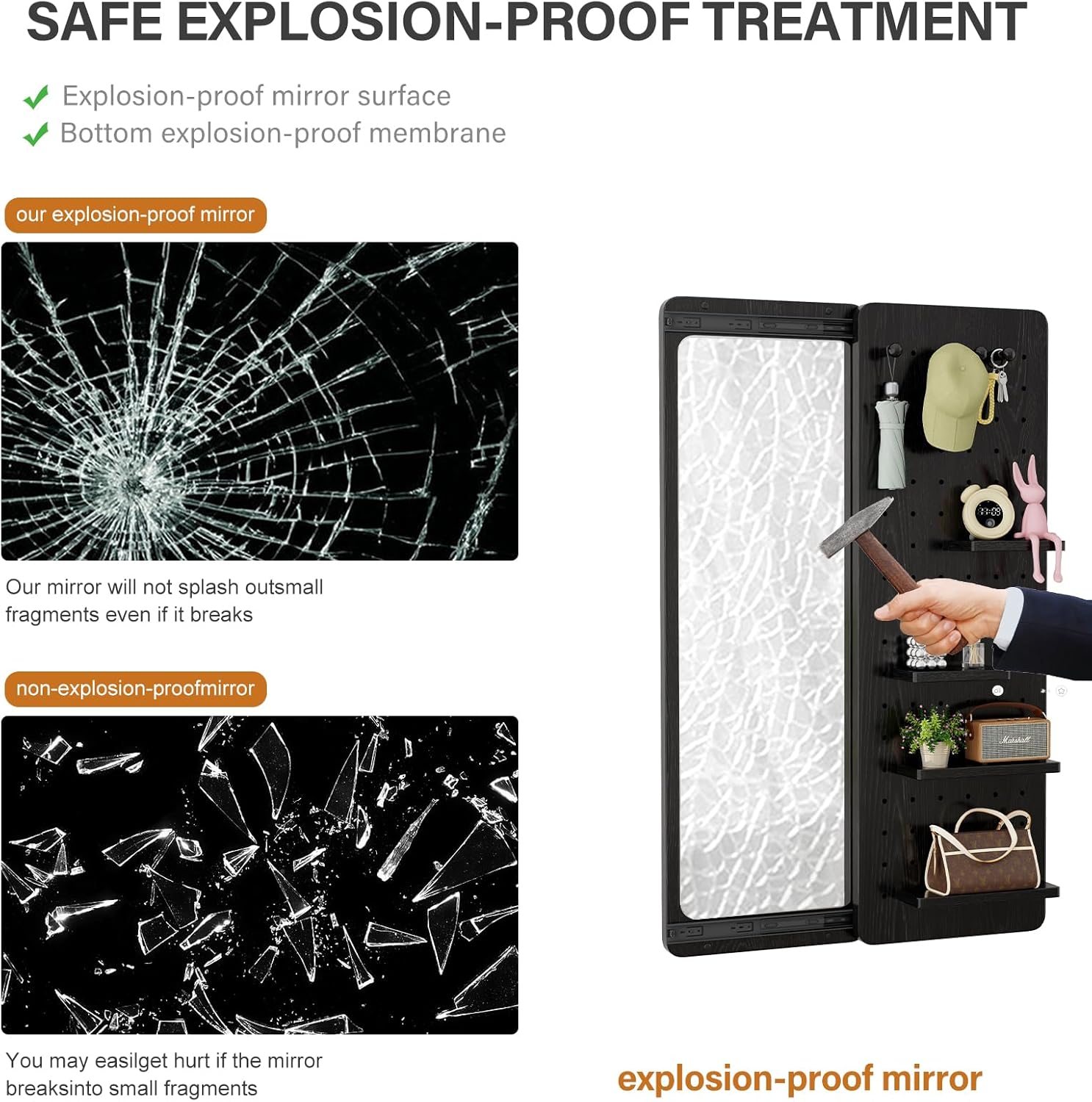 - 【Quality Materials】:The frame and top of this mirror full length are made of 100% rubberized wood for durability.The full length mirror wall mounted is made of explosion-proof mirror,which is safer and more secure,while the bedroom mirror's mirror reflection is high-definition and real