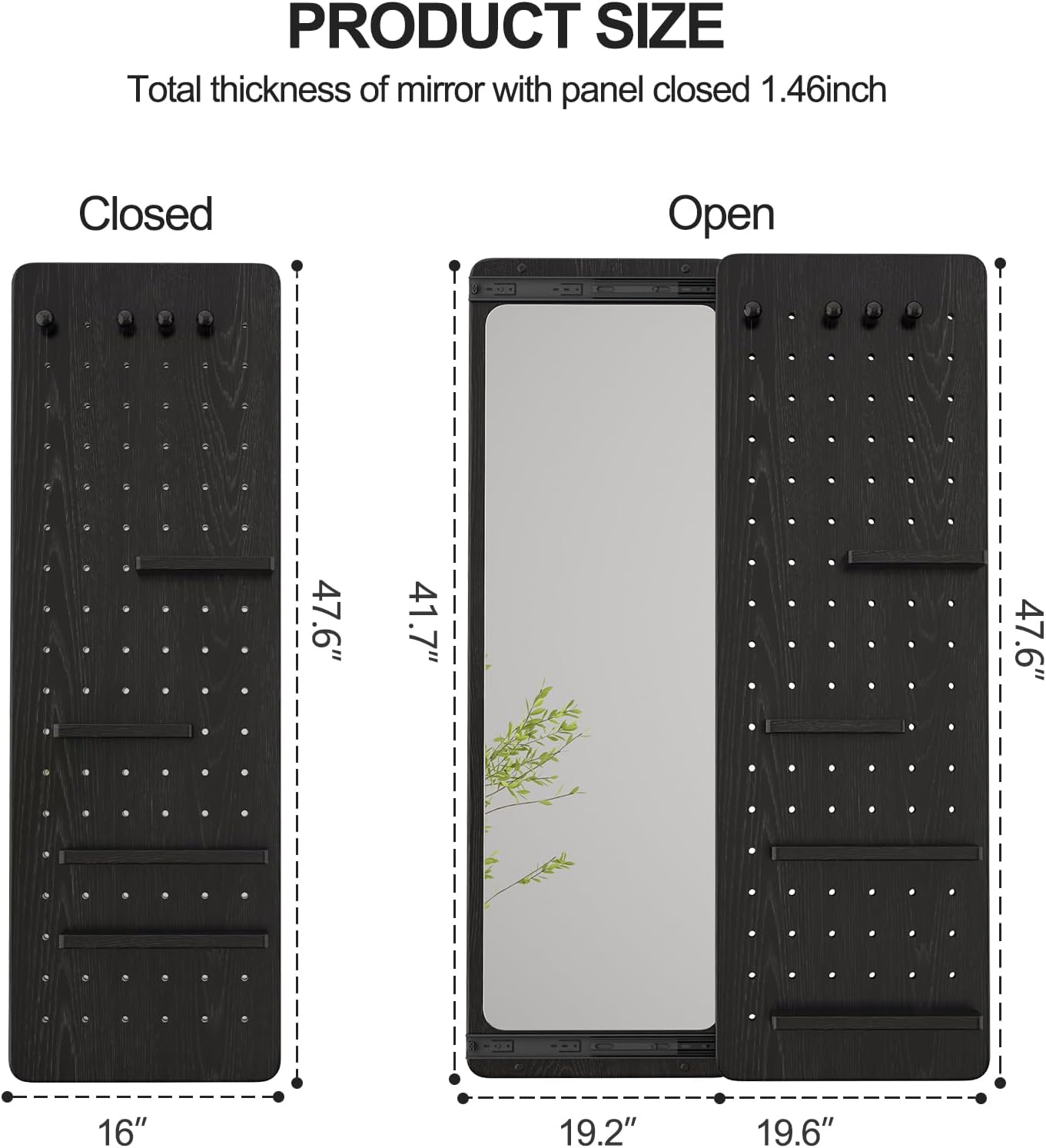 - 【Multi-functional Design】: This stand up mirror full length is both a wall decoration and a functional accessory.The full mirror is designed with independent display shelf and hook position,you can adjust the position of the display shelf and hook as you like to help you quickly organize your items,and the stylish design of the bedroom mirror full length adds a touch of elegance to any room,come and buy it!