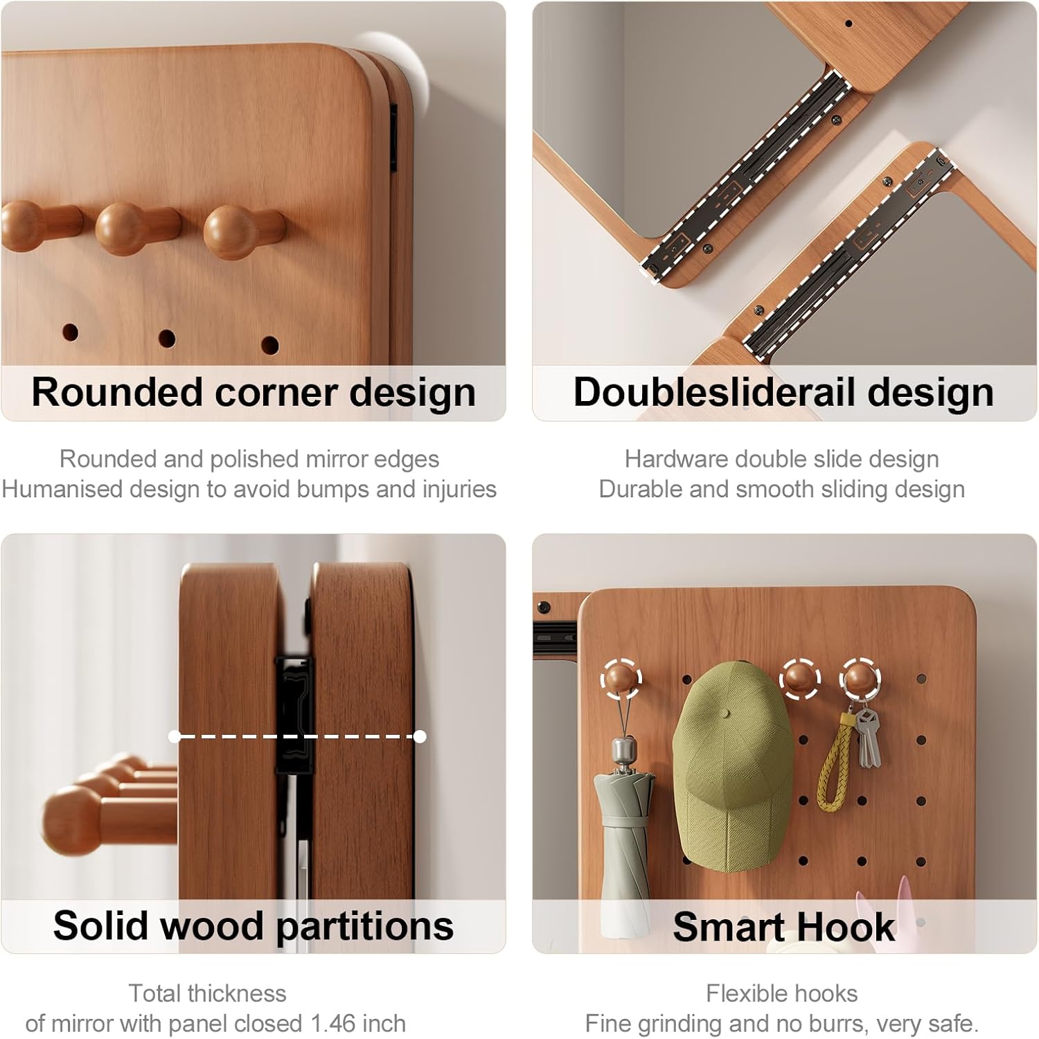 - 【Movable Panels】: The panel of this mirror wall is equipped with hardware double sliding rail design,which can be moved from side to side,you can create a unique layout according to your style and preference,whether you want a wall mirrors for bedroom or prefer a sectional look,this wall-mounted mirrors can be customized according to your needs