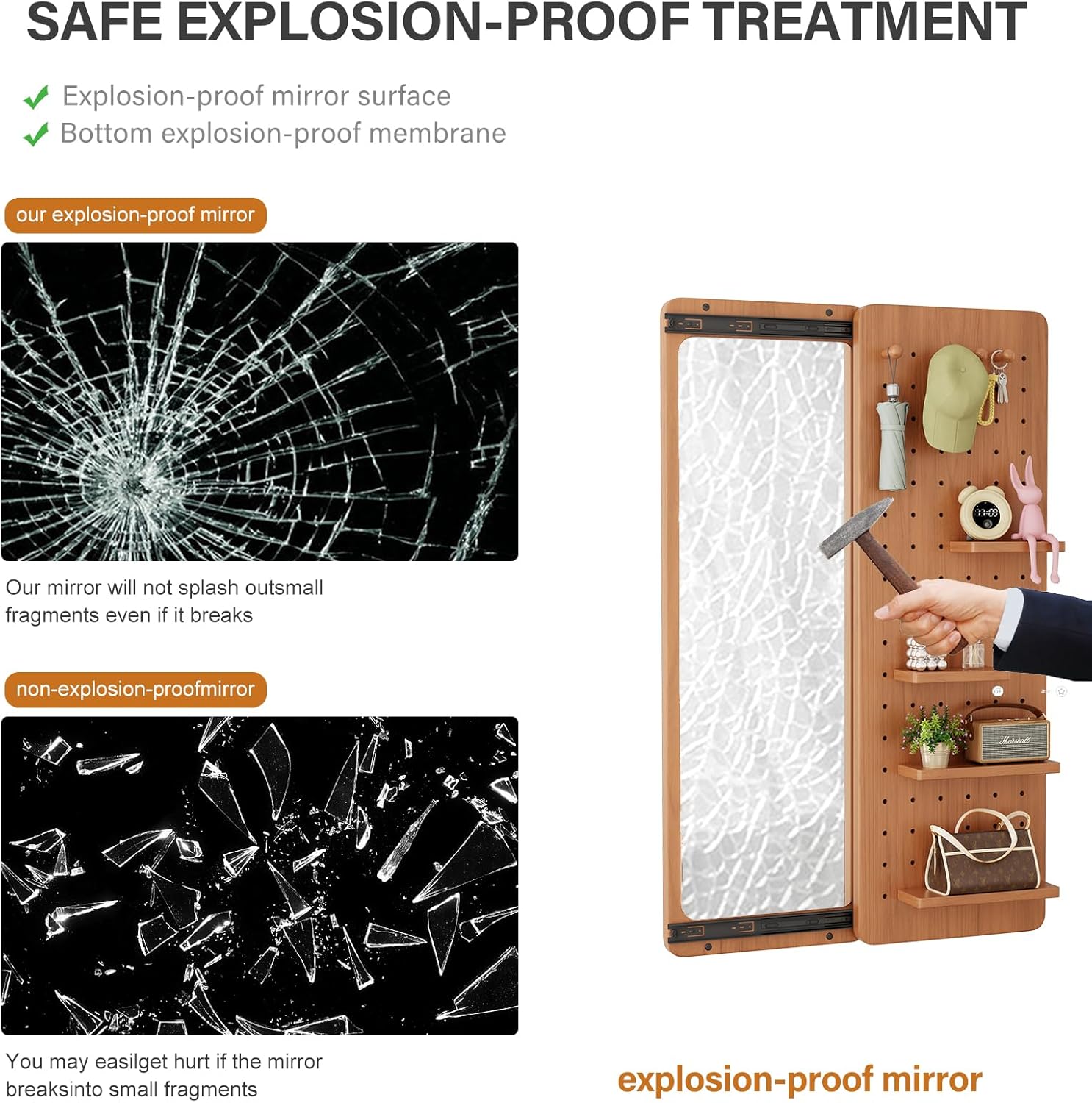 - 【Quality Materials】:The frame and top of this mirror full length are made of 100% rubberized wood for durability.The full length mirror wall mounted is made of explosion-proof mirror,which is safer and more secure,while the bedroom mirror's mirror reflection is high-definition and real