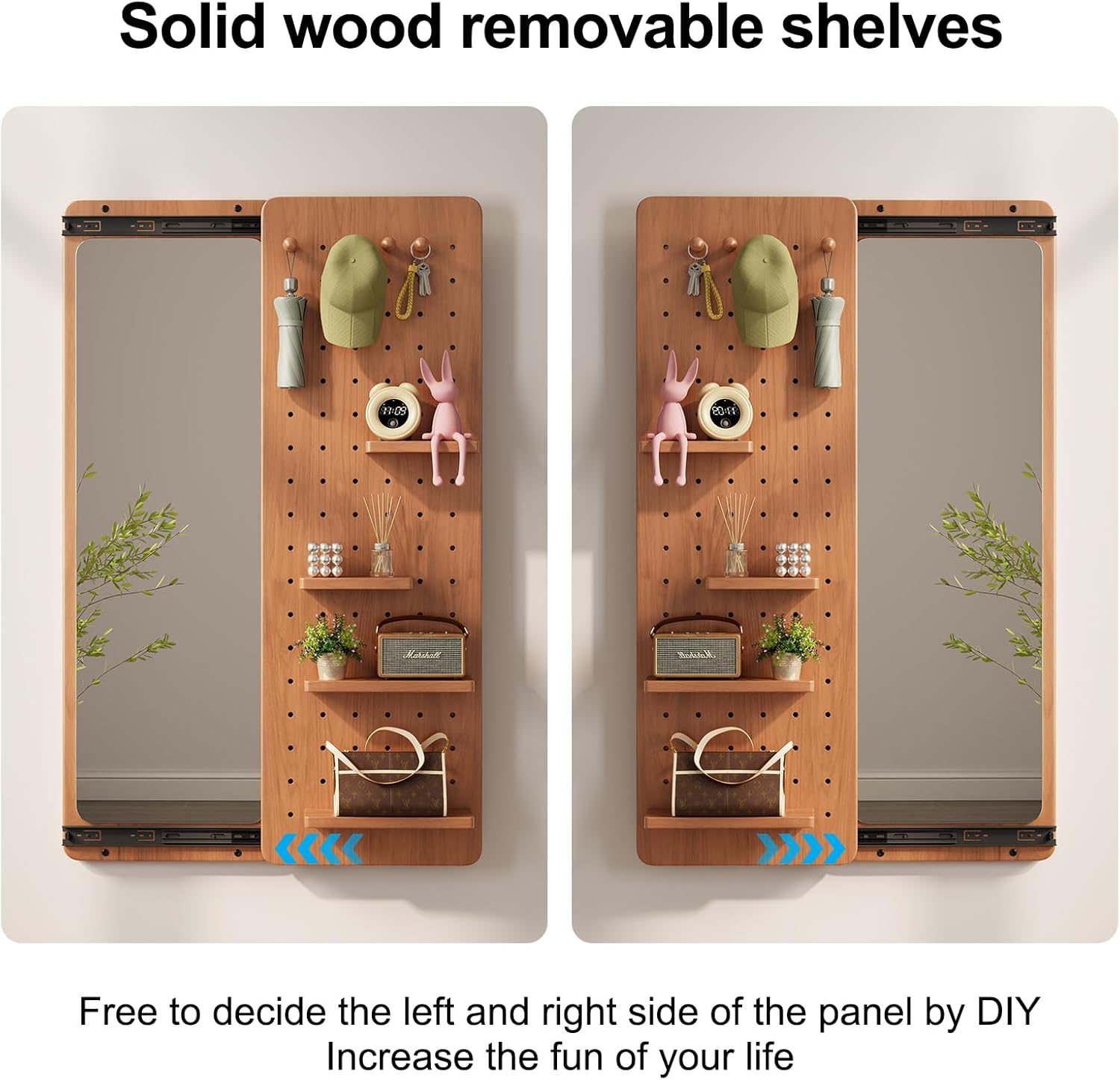 KungFuWood Full Length Mirror with Shelf and Hooks,Entry Way Mirrors for Wall,Wall Mirror with Shelf,Wall Mirror with Storage Multifunctional Design Panel,Living Room