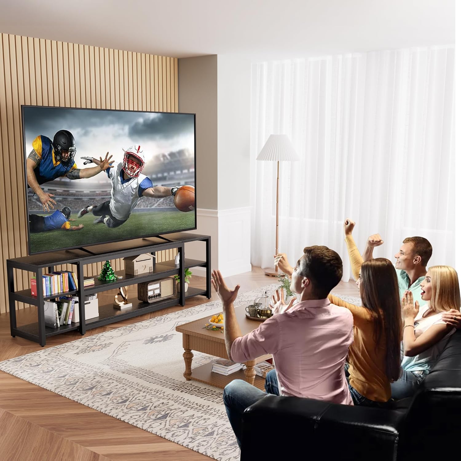 - 3-Tier 75.2” Wide Shelves Provide Large Storage Space: This TV cabinet offers 3 tiers of ample storage for all your media needs. The shelves provide space for large TV, devices, game consoles, DVDs, and books. Its open design ensures easy access and cable management, combining functionality with a modern aesthetic