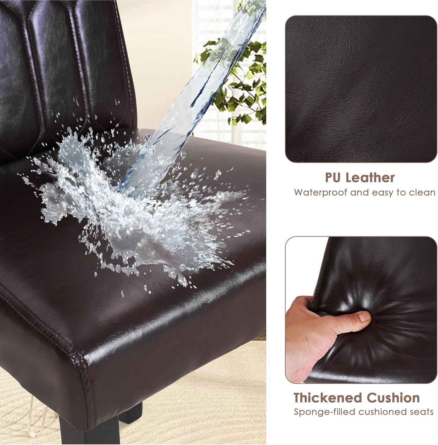 VECELO Upholstered Dining Chairs Set of 4, Modern PU Leather Accent Parsons, Solid Wood Legs w/Rubber Footpads, for Living Room Kitchen, Coffee