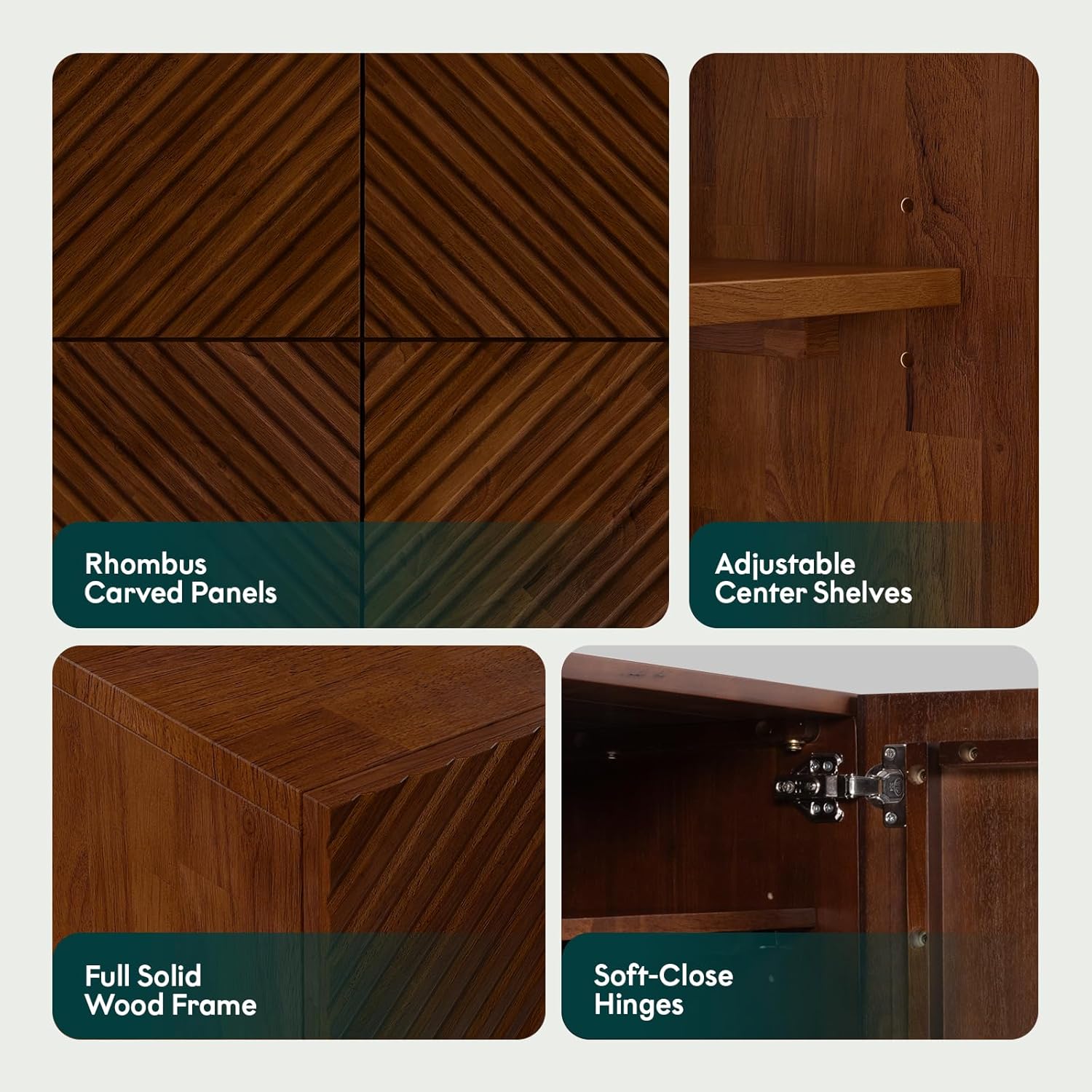 Bme Rhombus Wooden TV Stand with Storage Cabinets – Solid Acacia Wood, Geometric Rhombus Pattern Doors, Scandinavian Modern Entertainment Console with Metal Base