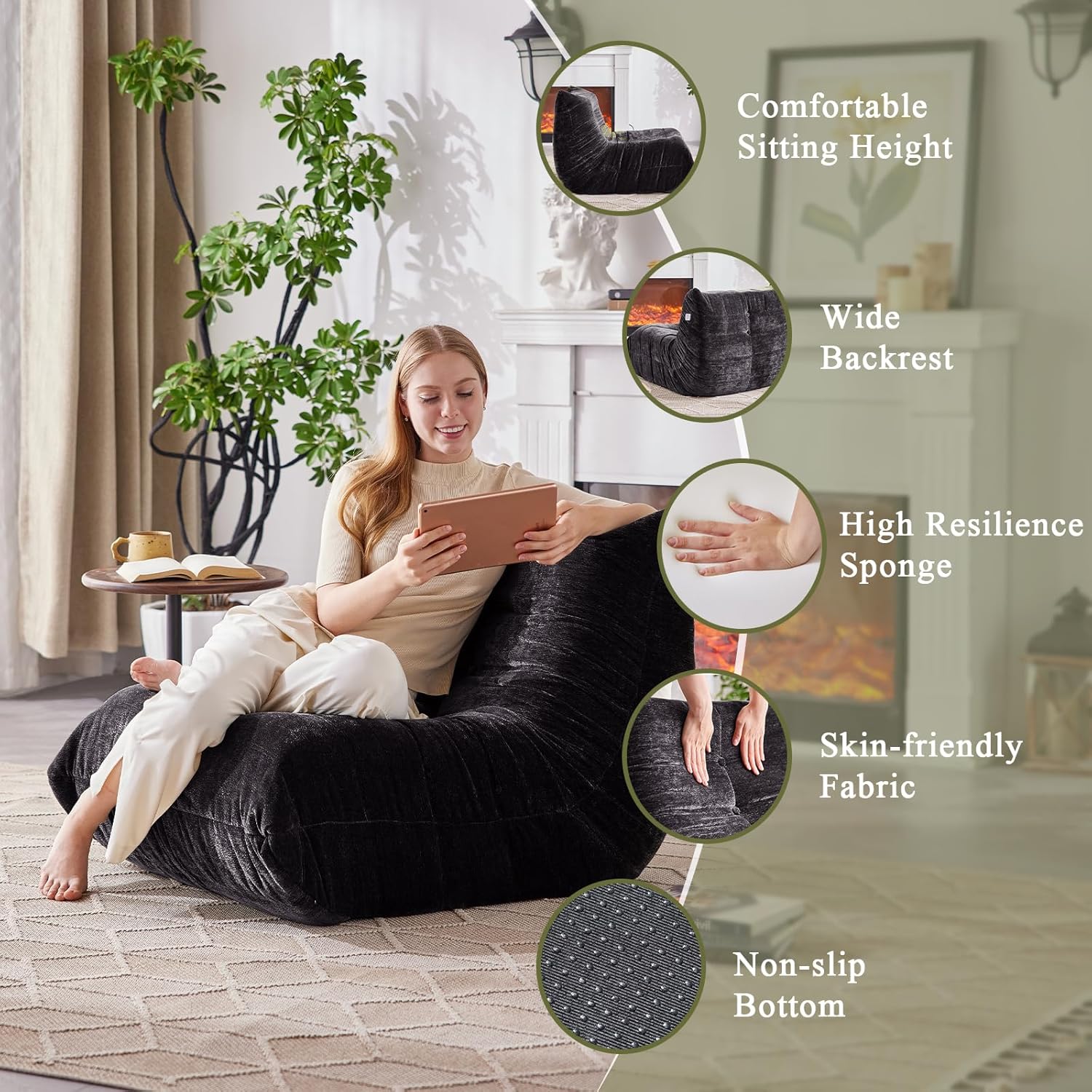 - 【Multiple Use】 Use our bean bag chair as a comfy reading spot, extra seat for guests, or relaxed floor chair. Fits small spaces like apartments, dorms, bedrooms, and living rooms. Great for watching TV, playing games, taking naps, or just chilling. Goes wherever you need comfort.