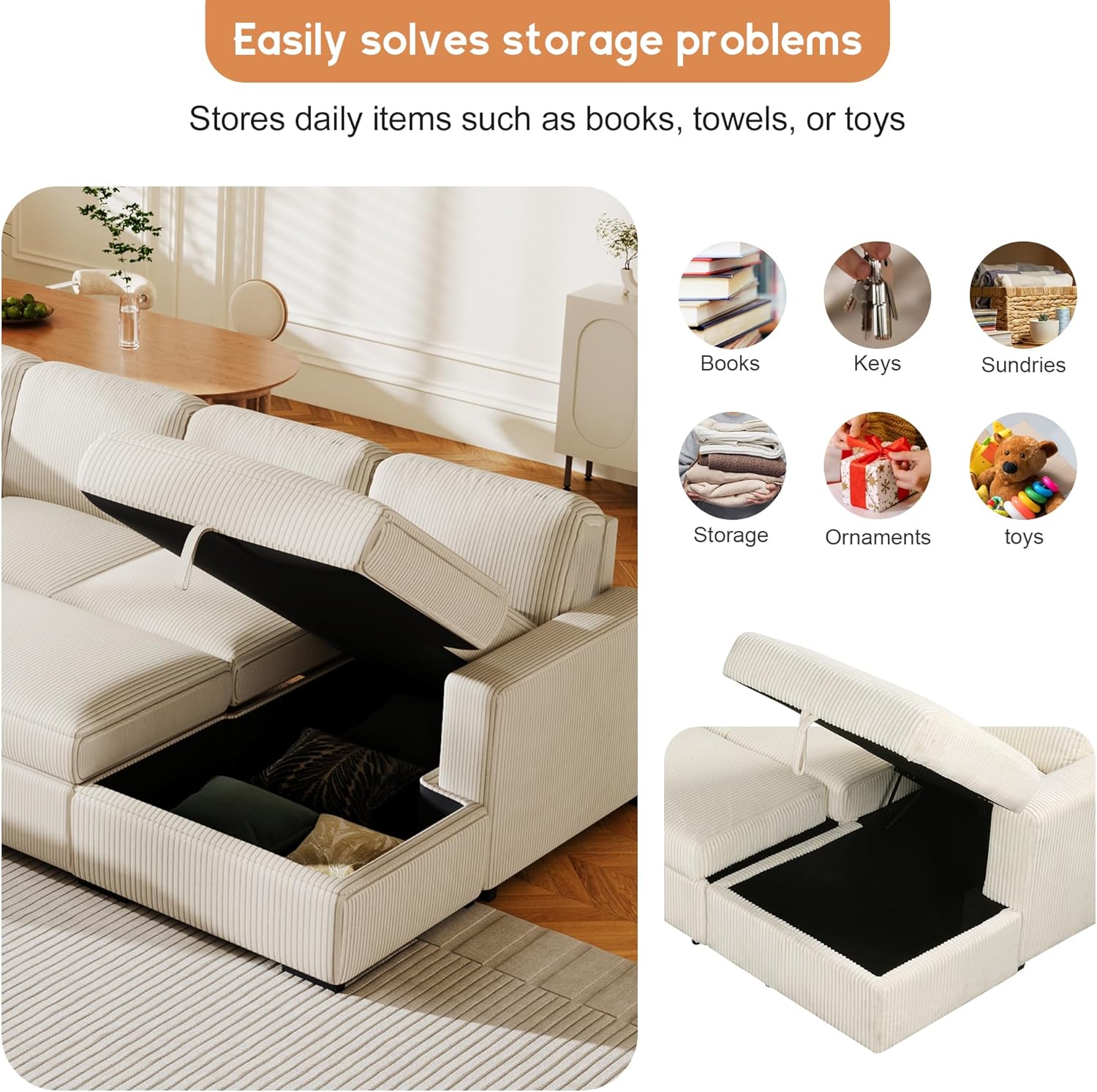 - Suitable for various environments: Our beautifully designed and space saving modular sectional sofa couch is perfect for all living spaces, whether it's a comfortable living room or a relaxing bedroom. It is carefully crafted with high-quality corduroy fabric, perfectly combining aesthetics and functionality.