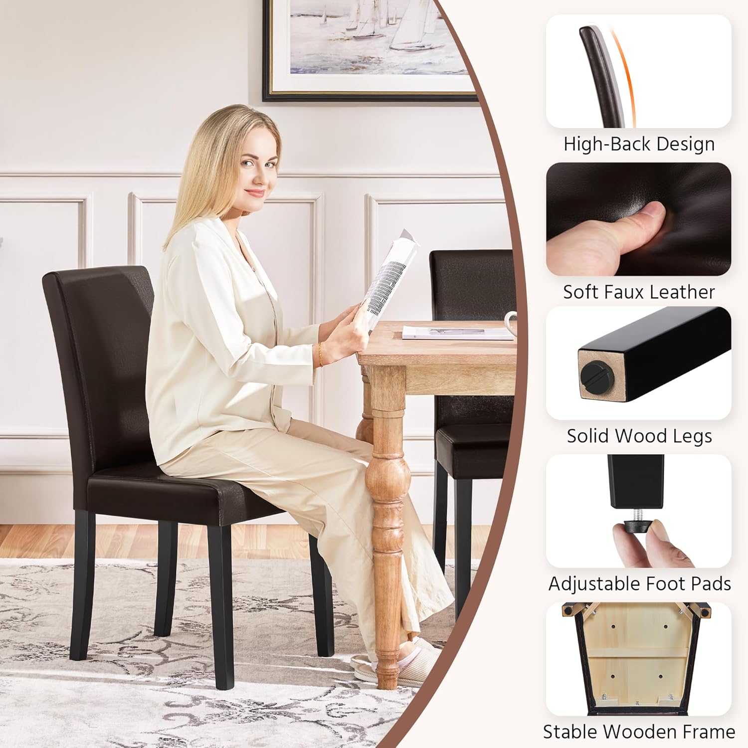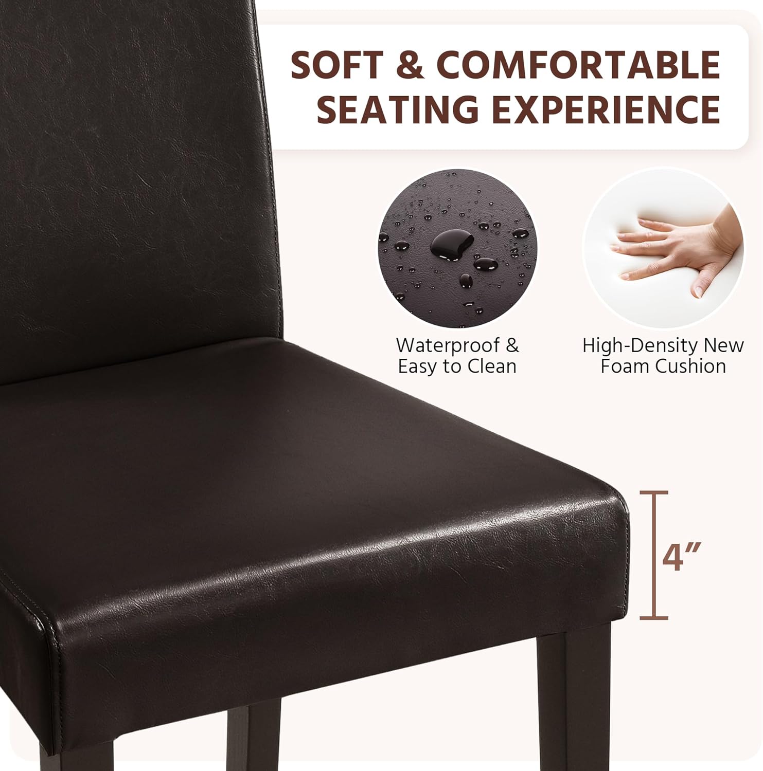 Yaheetech Dining Chairs Set of 6 Faux Leather Modern Dining Room Chairs with Rubberwood Legs and Padded Seat for Kitchen/Living Room/Restaurant, Dark Brown